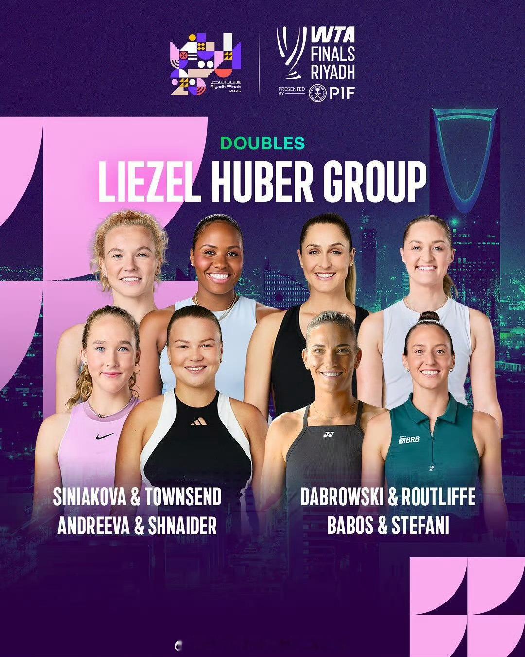 胡贝尔组:西尼亚科娃/汤森德、达布劳斯基/卢特利芙、安德列娃/施耐德、巴博斯/史蒂芬妮