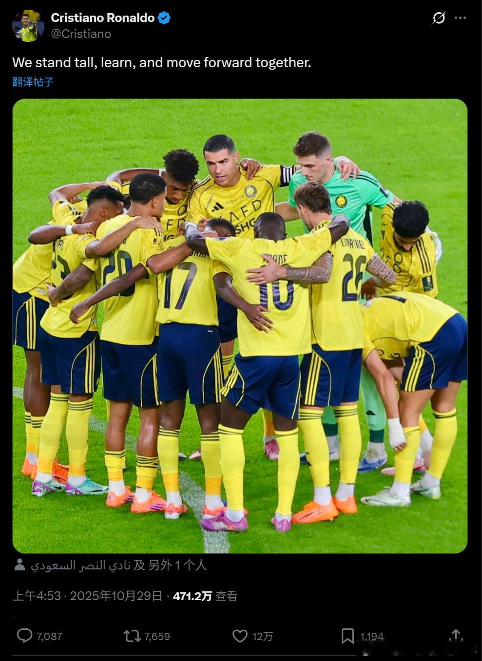 “我们昂首挺胸,一起学习并且继续向前。”💪利雅得胜利1比2吉达联合