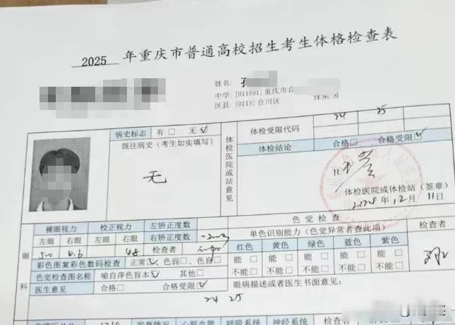 黄先生儿子被退学,体检结果前后矛盾,到底谁该负责? 孙某某是重庆合川中学的体育特长生,今年高考文化课考了502分,体育成绩87分,被遵义医科大学运动康复专业录了,开学十几天后,学校突然说他色觉异常,不符合专业要求,直接取消了他的入学资格,可他高考时的体检报告上明明写的是色觉正常,这就有点矛盾了,同一个学生,两次体检结果不一样。 家长黄先生有点懵,高考体检是合川区教育考试中心统一安排的,流程也正规,当时没查出问题,现在学校复查说有色弱,那之前怎么没发现,是不是高考体检标准松了,或者操作有疏漏,学校那边态度很硬,说他们复查了多次,确认是色弱,而且这个专业明确不招色盲色弱,没法转专业,也没法商量。 其实这事儿不是谁对谁错就能说清的,高考体检和大学入学体检用的标准本来就不一样,高考只要求基本合格,大学却按专业要求卡得死,中间既没数据互通,也没复核的流程,色弱这种事,有时候还跟光线、设备、检查的人状态有关系,容易出假阴性,可没人跟考生提过,也没人提前预警。 更麻烦的是,体育特长生报志愿的时候,大家光看分数和专项成绩,很少有人留意健康要求,比如色觉好不好,心肺功能行不行,志愿填报的时候压根没醒目的提醒,遵义医大两个体育类专业都要求色觉正常,全国差不多七成以上的类似专业都有这要求,可招生简章里往往就轻轻带过,也没人专门跟你说一声。 现在招生体检的指导意见还是2003年的老样子,没跟上现在的视力检查技术,广东和浙江那边已经开始试点,在填志愿的系统里自动提醒哪些专业可能不适合你,但全国还没统一这么做,2023年江苏有艺术生因为色觉问题被退学,教育部当时去调研过,到现在也没拿出新的办法。 孙某某现在只能复读,高考完他放松了段时间,去旅游、打工,学的东西都快忘光了,想重新学心里又压得慌,合川那边的考试中心和医院都不搭理人,档案也调不出来,责任来回推,最后受罪的还是孩子,家长没办法,只能咬牙让他再考一次,挑个不挑专业的方向,说到底,系统出了问题,吃亏的还是个人。退学 体检