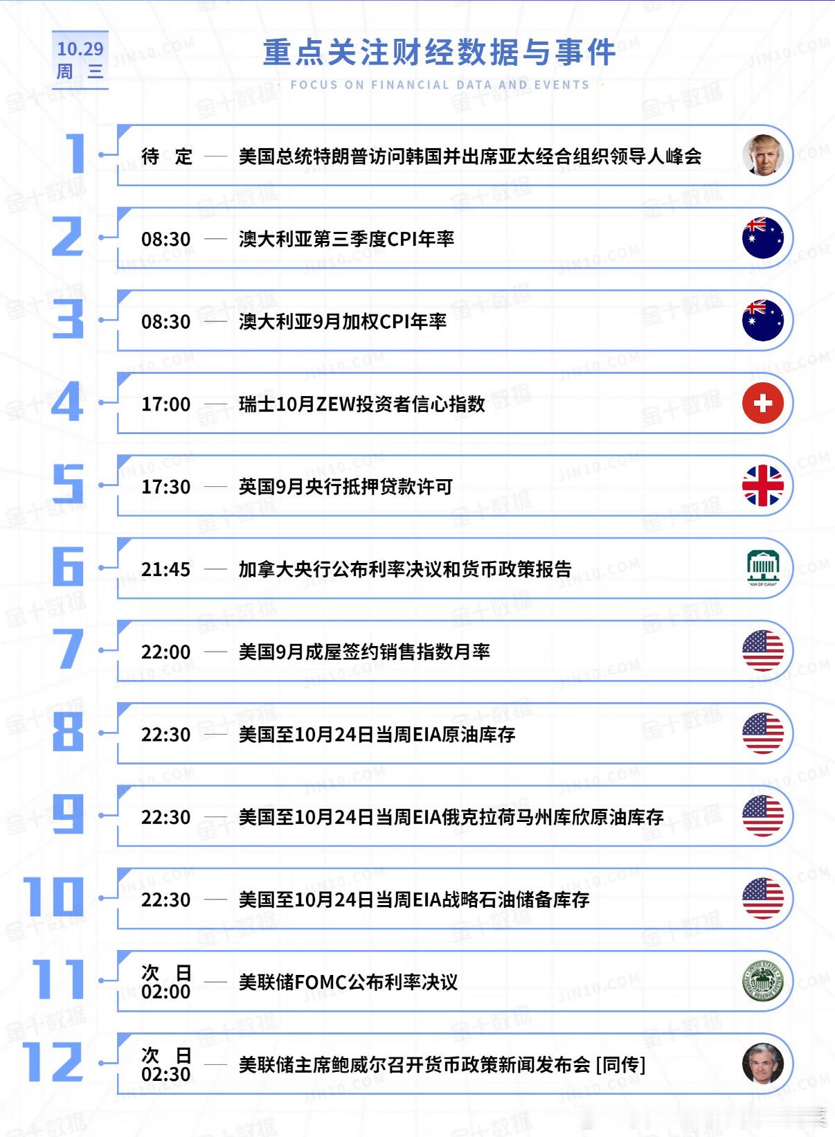【今日重点关注的财经数据与事件:2025年10月29日 周三】