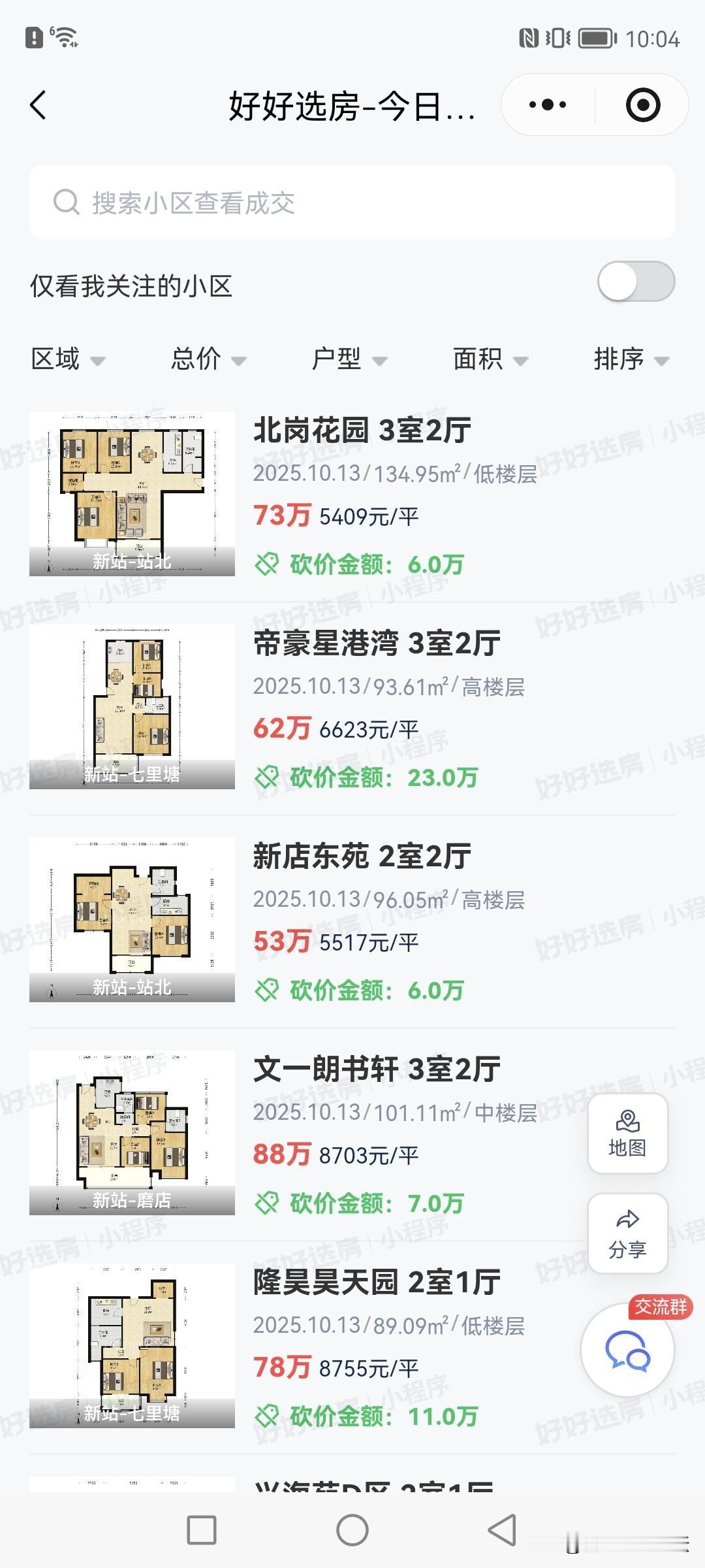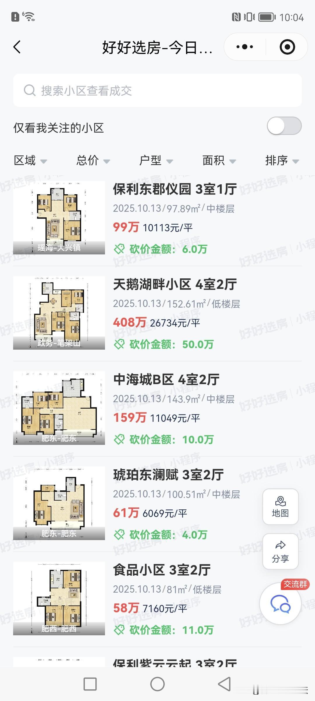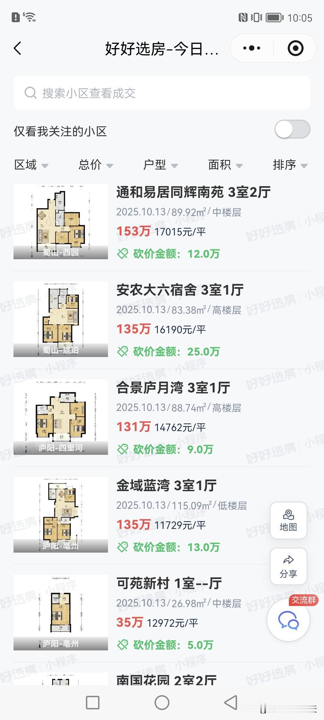 你没有看错,这是合肥最新一天二手房的成交情况。合肥这个房价也比较友好吧,都是几十万的成交量多。所以不要老是盯着新房,不要老是盯着次新房和一些核心位置的。考虑一下30年的生活,所以不能一时头脑发热,被几句说辞和样板间给下了决定。