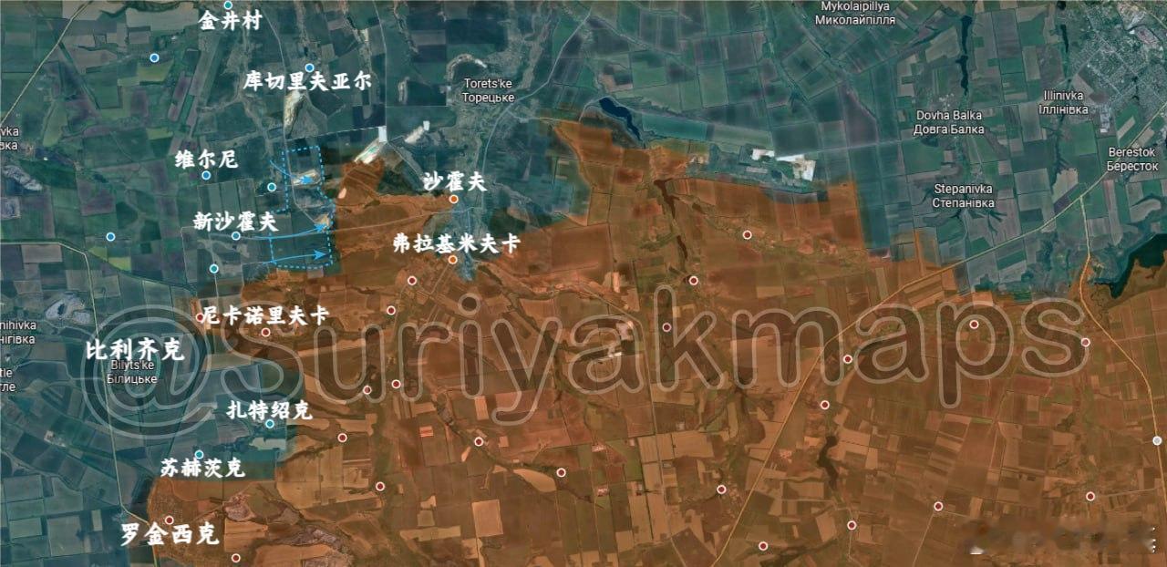8、沃斯里夫卡:俄军向普里莫尔斯克发起新的推进,控制了卡约夫卡水库附近的一系列阵地,直至扎利兹尼奇纳街。