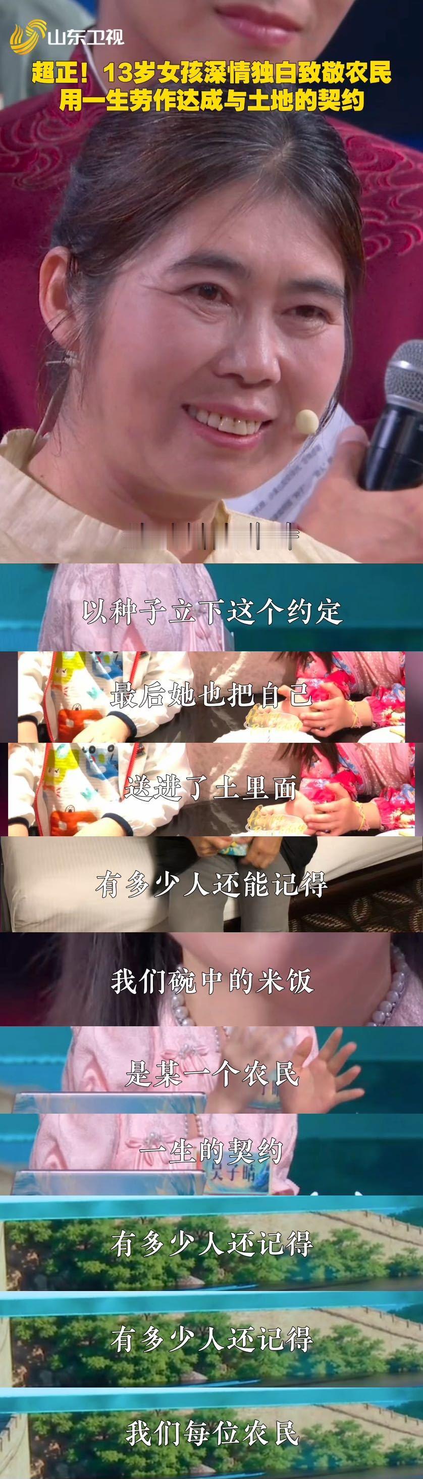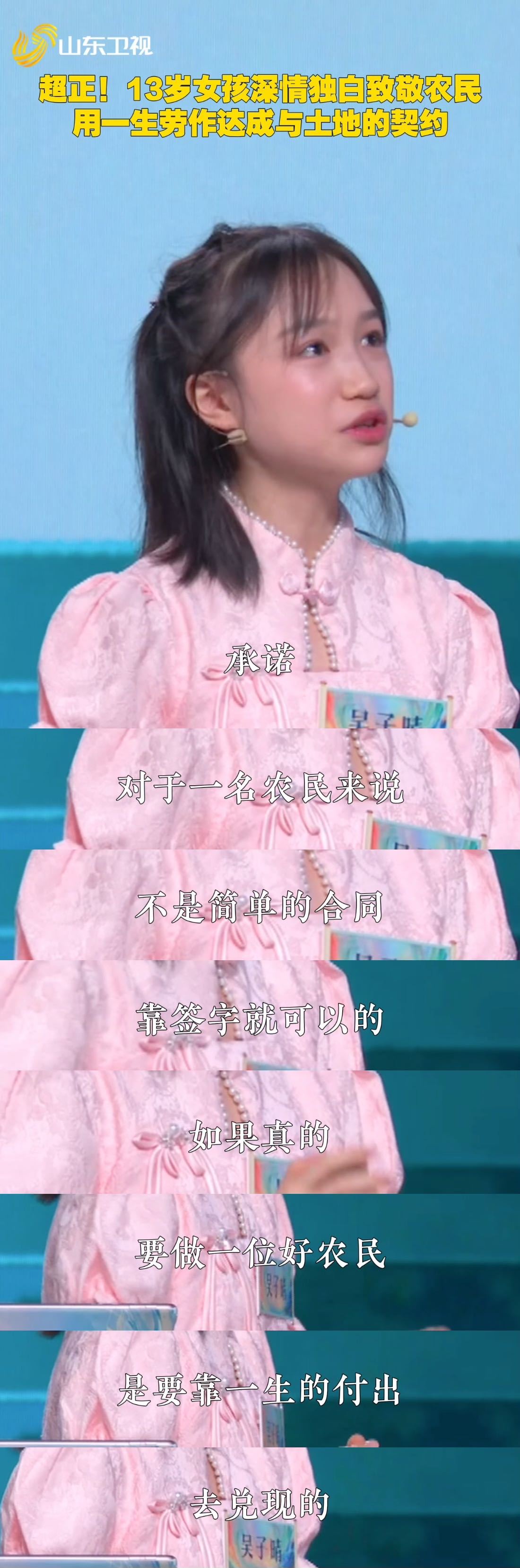 13岁吴子晴的独白太戳心!她讲外婆做了60多年农民,说农民是和老天爷打赌,用一生兑现与土地的契约,这话一出口就让人鼻酸。更让人破防的是她那句“碗里的米饭,是某一个农民一生的契约”,直白道出粮食背后的深情。她用真诚致敬农民,也让我们读懂土地与劳作里的重量,听完满是感动!