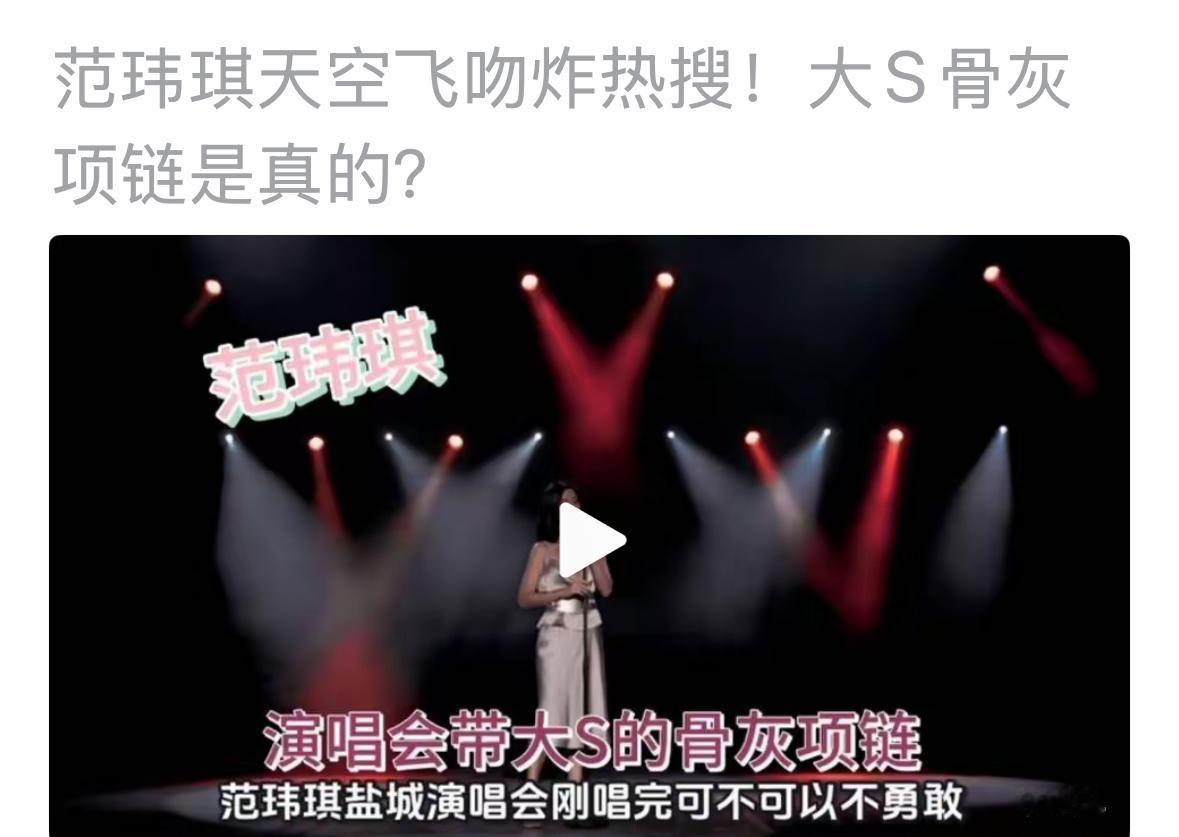 大S的流量继续,好朋友开演唱会,戴着大S的骨灰项链,太难了。不知道怎么说。都是为了纪念大S的友谊吗?她的朋友都用不同的方式去纪念她,对她的感情真的是太深了。希望大家一切安好。活着的人,要努力把现在的生活过好。