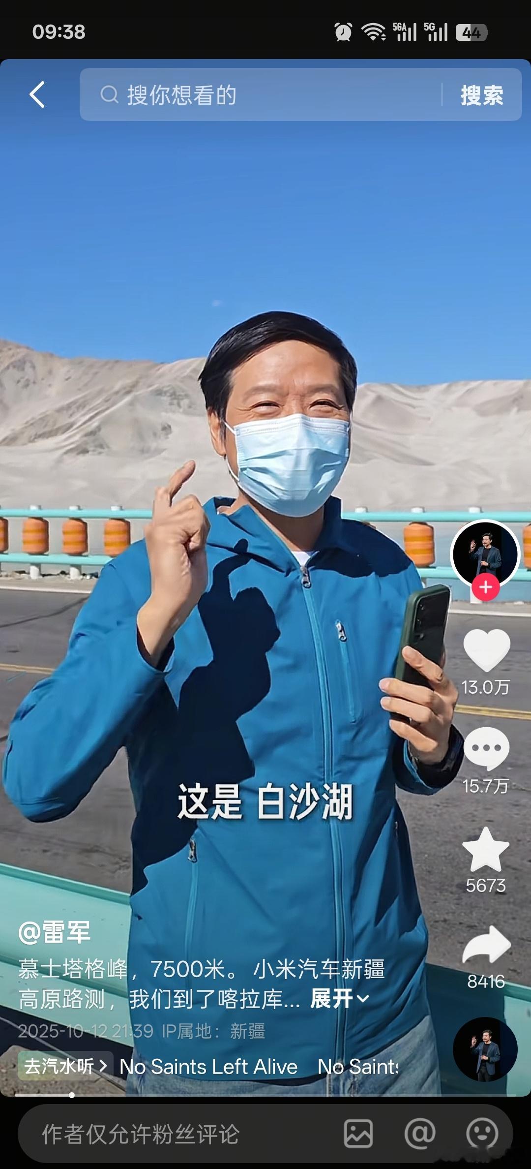 抖音上雷军的账号已经有一段时间没有更新视频了,最近的一个视频还是10月12日发的关于小米汽车新疆高原路测的。