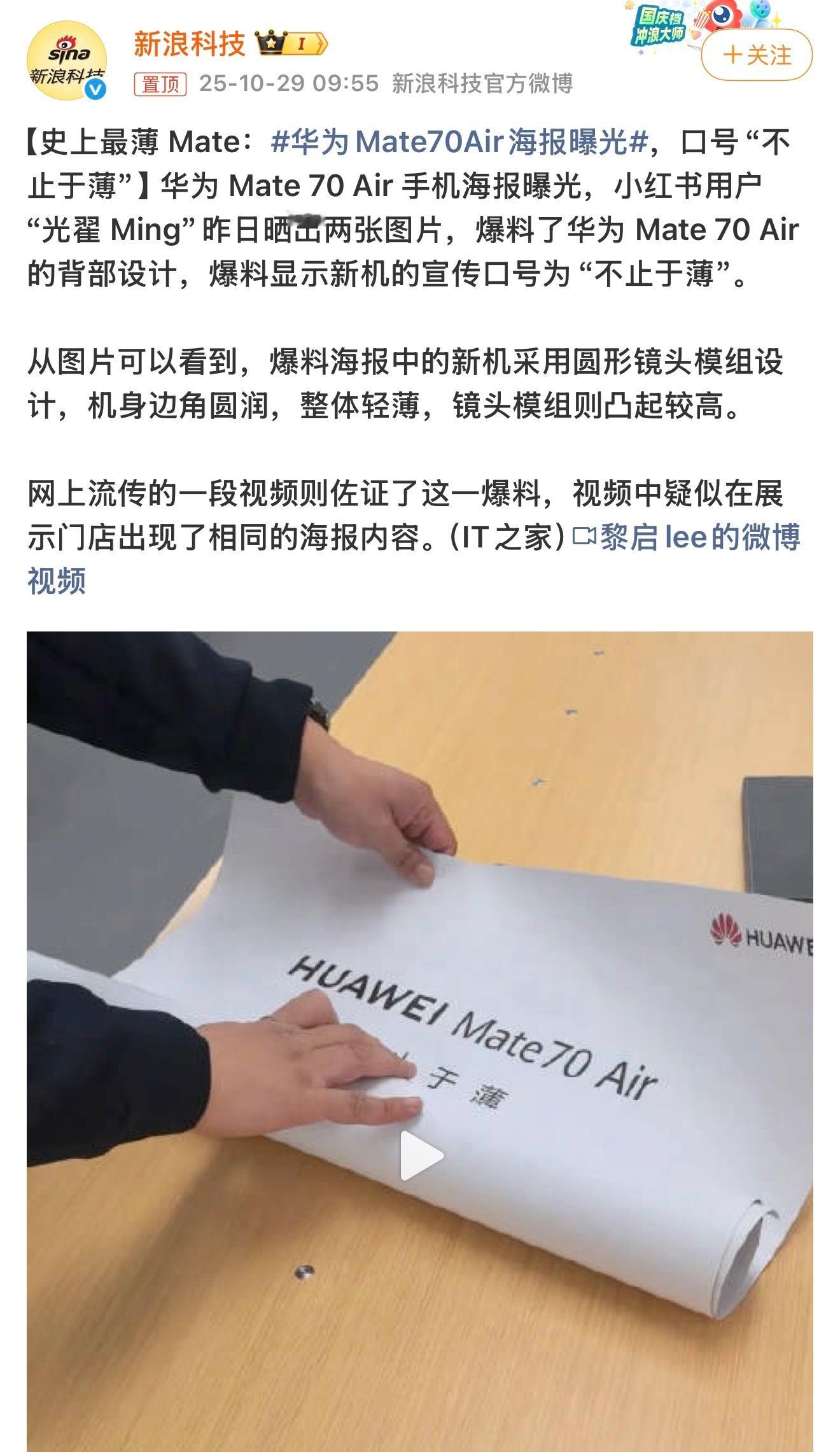 华为Mate70Air海报曝光[吃惊]华为的Air真来了?
