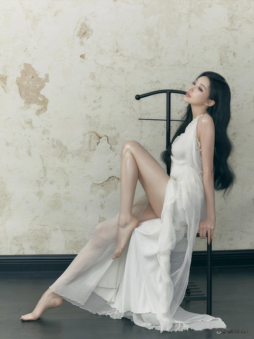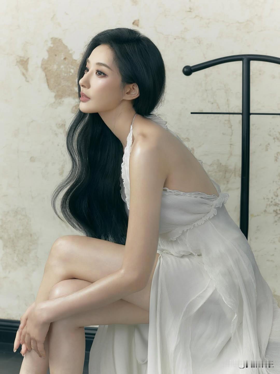 优雅黑发美人,静坐沉思,裙摆飘逸,气质非凡。漂亮小姐姐 大长腿