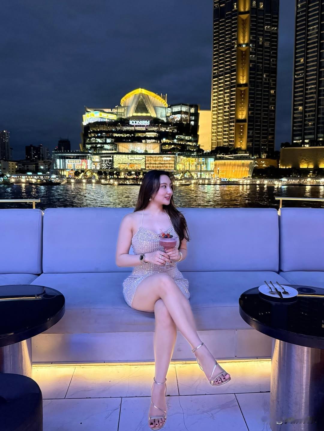夜晚河畔的浪漫时光,享受美食与美景