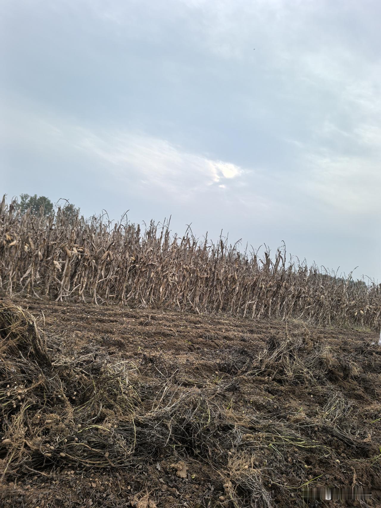 今天我们的太阳, 不落西山, 也不落进海平面, 也不落树梢, 落进玉米稞地里。 太阳可能觉得以这种方式说拜拜太土了, 害羞地拿乌云挡住脸。 玉米早就春蚕到死丝方尽, 走完一生的绿色征途, 看上去一片干枯毛躁, 留下一个用毕生精力凝聚的丰硕玉米棒, 藏在腰间。 腰疼,腿疼的人们也没空欣赏夕阳, 埋头苦干, 从地里一粒一粒扣出果实。