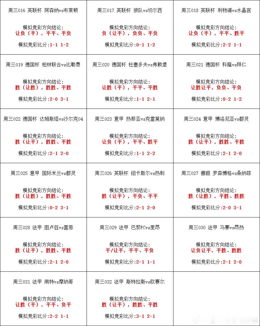 今日竞足赛程表!
