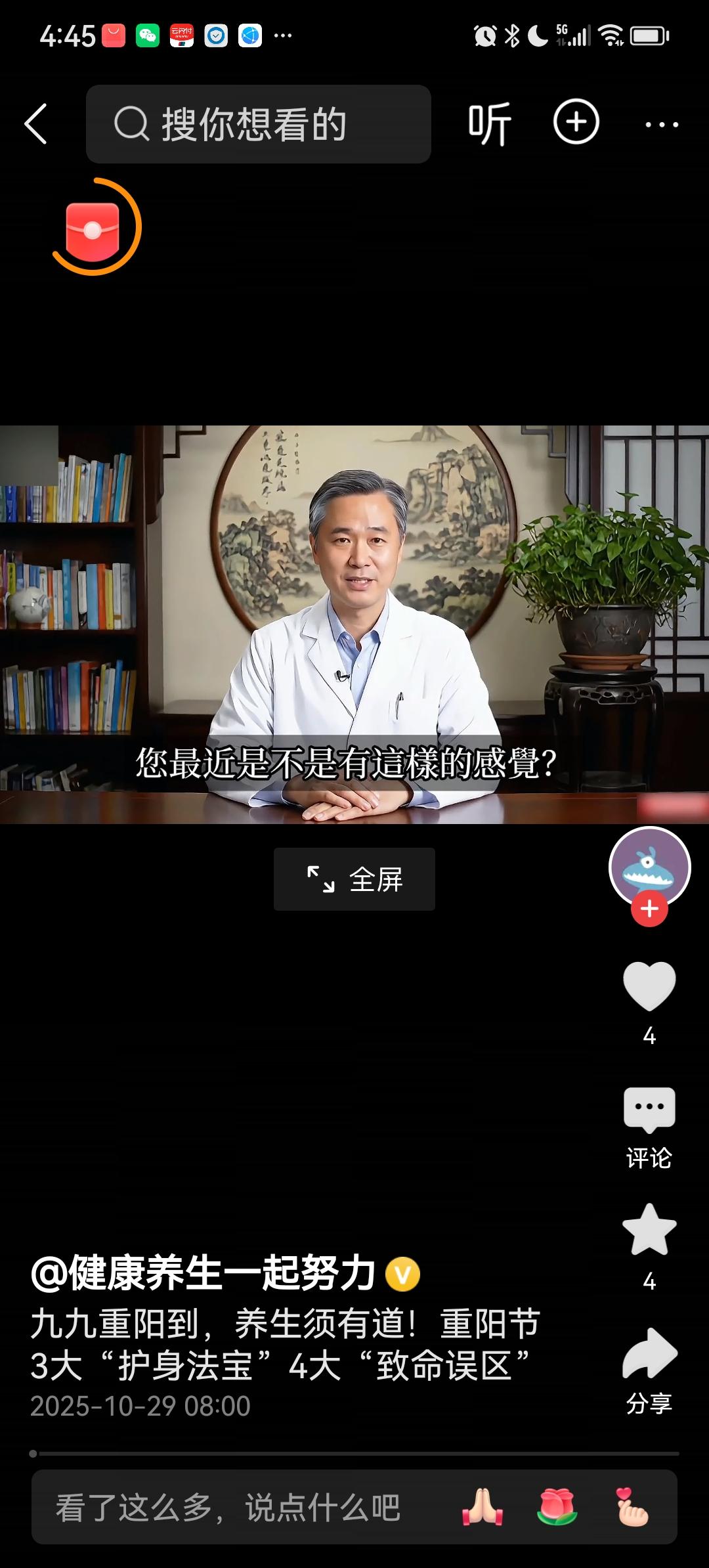 重阳节特别献礼:老年健康全攻略,延缓衰老的秘密都在这里! 又是一年重阳节,满满的敬老情怀让人心头一暖。这个特殊的日子里,我们不仅要表达对长辈的关爱,更要传递一份关乎健康的“硬核秘籍”。你知道吗?随着年龄的增长,身体的每一个细节都在悄然发生变化——腰酸背痛、腿抽筋、动作变慢……这些看似普通的症状,其实是在提醒我们:肢体在衰老,但我们可以用科学的方法延缓这个过程,让生活更有质量、更有尊严。 今天,我就为大家揭开“老年健康的秘密武器”,告诉你如何科学延缓肢体和感官的衰退,让每一位长辈都能活得更健康、更自信!快来看看吧,这份指南绝对是你我都不能错过的重阳节礼物! 一、肢体衰老,如何逆转“时间的脚步”? 很多老人会发现,随着岁月流逝,腰酸背痛、腿抽筋、动作变慢似乎成为了常态。这其实是身体在告诉你:肢体功能正在逐渐下滑。如果忽视,衰退速度会加快,但别担心!科学研究和临床实践告诉我们,虽然生理上的衰老无法逆转,但通过合理的生活习惯和科学的锻炼,完全可以延缓这个过程。 首先,保持规律的生活节奏是基础。每天按时睡觉,保证充足的睡眠,有助于肌肉修复和神经系统的稳定。均衡的饮食也非常关键,丰富的蛋白质、钙质和维生素能为身体提供必要的养分,帮助肌肉和骨骼更强壮。 其次,避免“累积性伤害”。许多老人喜欢长时间低头看手机、久坐不动,这些不良习惯会逐渐损伤关节和肌肉。建议每隔30分钟起身活动一下,做一些简单的拉伸或走动。搬重物时,要用正确的姿势,避免用力不当导致肌肉拉伤或关节损伤。 第三,增强基础力量。肌少症是老年人常见的健康隐患。每周进行两到三次抗阻训练,比如用弹力带做深蹲、坐立起身等简单动作,不仅能增强肌肉力量,还能改善身体的平衡感。补充蛋白质和钙质,也能帮助肌肉和骨骼保持健康。定期检测肌肉状态,及时调整锻炼方案,是科学延缓衰老的关键。 第四,平衡训练不可少。跌倒是老年人最常见的意外事故,也是导致住院和生活自理能力下降的重要原因。可以每天练习单脚站立、八段锦等运动,提升身体的平衡能力。每年进行一次平衡功能评估,发现问题及时干预,能有效预防跌倒风险。 第五,柔韧拉伸,保持关节灵活。每天花10到15分钟做一些简单的拉伸动作,比如靠墙抬腿、广播体操等,有助于改善关节的柔韧性,减少僵硬感,让行动更加自如。 第六,情绪和呼吸调节也很重要。慢性疼痛和焦虑常常相互影响,形成恶性循环。可以尝试“延长呼气式”呼吸法:吸气4秒,呼气6到8秒,有助于放松神经,缓解肌肉紧张。 最后,定期体检是保障。通过数据监测,及时发现身体的变化,科学调整养护方案,让健康状态始终处于“可控区”。健康不只是排除疾病,更是提升生活质量的基础。 二、感官退化,如何让“感官之门”再亮起来? 除了身体,五感也会随着年龄增长逐渐衰退。视、听、嗅、味、触,每一项都在悄然“变老”。但只要用心呵护,完全可以延缓感官的退化,让生活变得更加丰富多彩。 首先,保护视力。老年人常常面对近距离模糊、夜间视物困难和对光线敏感的问题。建议规律用眼,避免长时间盯着电子屏幕。居家照明要柔和充足,避免刺眼。定期检查眼底,及早发现白内障、青光眼等疾病。多吃富含叶黄素的食物,比如胡萝卜、菠菜、蓝莓,有助于保护视网膜。 其次,守护听力。随着年龄增长,听力会逐渐下降,尤其是高频声音变得模糊。远离噪声环境,避免长时间使用耳机。出现听力下降时,要及时就医,排除耳垢堵塞或中耳炎。严重者可以佩戴助听器或考虑人工耳蜗,恢复听觉的“清晰”。 第三,保护味觉和嗅觉。很多老人会发现,饭菜变得“没味道”,食欲减退,营养不良。保持口腔卫生,定期洁牙,合理调味,丰富菜品色香味。戒烟限酒,避免嗅觉受损。嗅觉减退还可能是鼻腔疾病或神经性疾病的早期信号,出现明显变化应及时就医。 第四,守护触觉。皮肤敏感度随着年龄降低,容易烫伤或摔倒。适量运动,比如跳舞、打球,不仅能增强身体协调性,还能促进血液循环,改善触觉。皮肤干燥者应每日使用保湿乳液,避免皮肤破裂感染。 三、让生活更精彩——互动时刻 重阳节不仅是敬老的日子,更是提醒我们关心长辈健康的最佳时机。你有没有为家中的长辈准备过特别的健康小贴士?他们的身体有哪些变化你最关心?留言告诉我你的故事和感受,一起分享健康秘诀,让更多人受益!关注我,带你了解更多老年健康的科学知识,让我们共同守护长辈的每一个微笑!别忘了点赞、转发,让这份关爱成为这个重阳节最温暖的传递!老年养生秘诀 延缓衰老妙招 老年人健康忠告 抗衰老方法