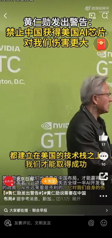 黄仁勋不甘心失去中国市场 站在自己和公司的角度上,确实是不想失去中国市场,解禁了也卖不了高端的还是中国特色版