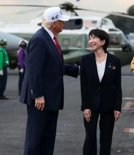 我们不能埋汰任何人,但是能谄媚到令人想呵斥一声,提醒她一下的程度,找不到第二人。不过她把师傅安倍晋三的处事精髓领悟的透彻,也算是告慰逝人,地下有人会笑的。 像极了涉事不多的小女孩,在长辈面前两手无处安放,憋足了的笑靥里,富含了一种动物的气息。如果知道她是接近70岁的人,在80岁的人面前,那种告知面相:我的站立不能持续太久,请不要对我双手触地感到意外。 显然,脊柱里的精髓被抽走的人,必须保持一定的尊严,但她五指并拢蜷缩成稳稳着地状,告诉任何人,被美国征服的后果不容置疑。 这种状况是她们的祖先造成的,怨不得别人。这种没有瑕疵的媚笑肯定不会令大总统心花怒放,因为他喜欢漂亮的,成熟的人,就像老婆梅拉尼亚那样。而高市早苗这种缺乏矜持的状态,会感染大总统的,指不定逼的他会用汪星语言告诉秋天劝早苗,你“汪汪”跪安吧!