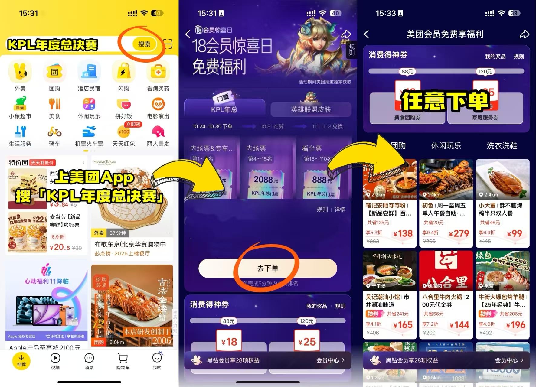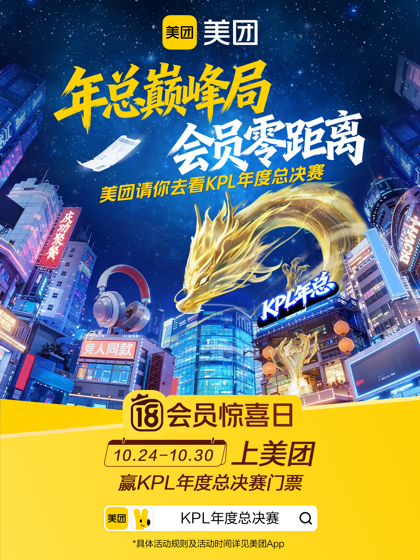美团会员送KPL年总决赛门票第一次见这样给奶奶过生日的年轻人的快乐很简单:打王者赢一局,抽KPL门票中一次!打开美团参与活动,就有机会拿到年总门票,奔赴鸟巢为喜欢的战队呐喊~