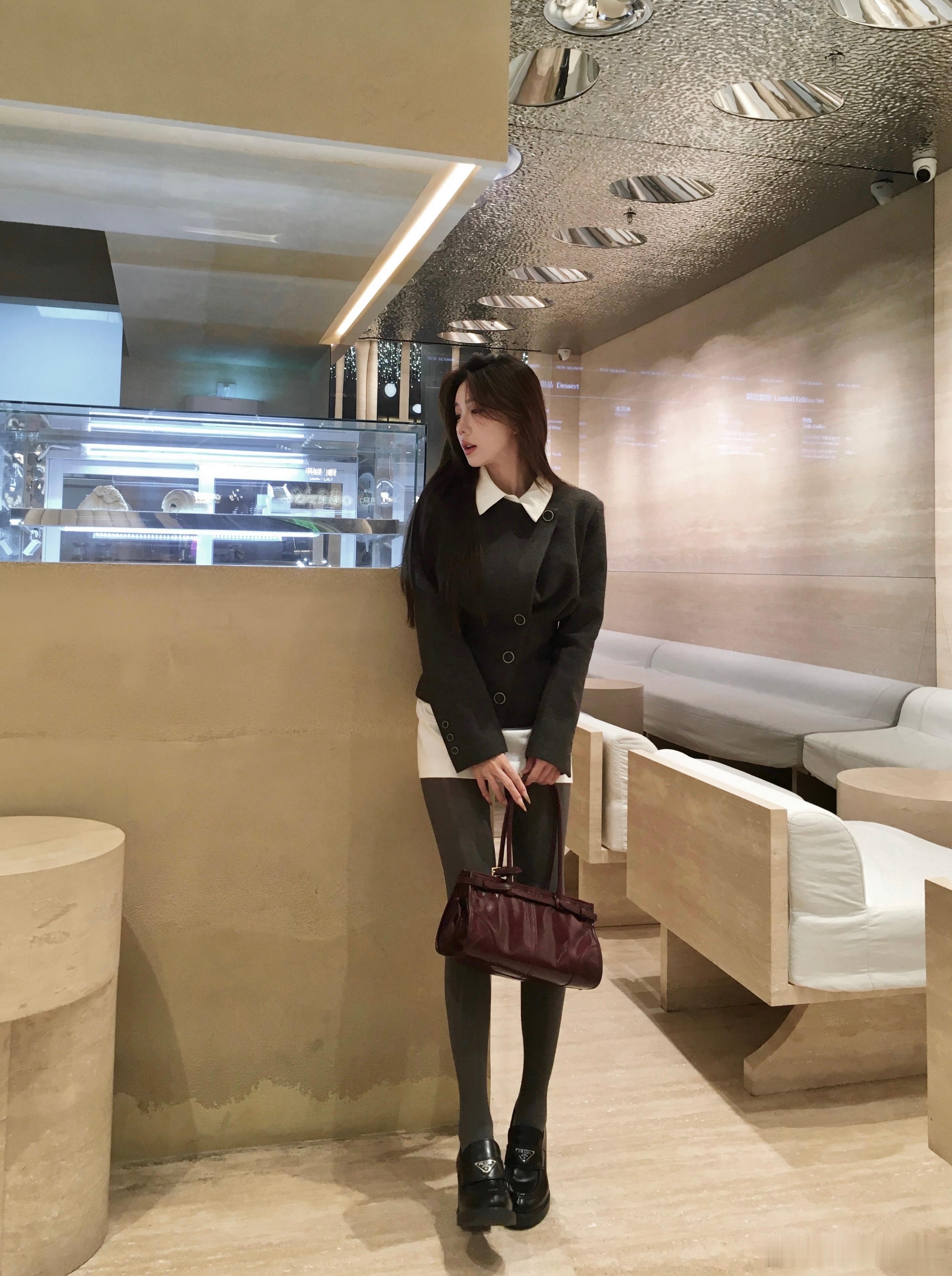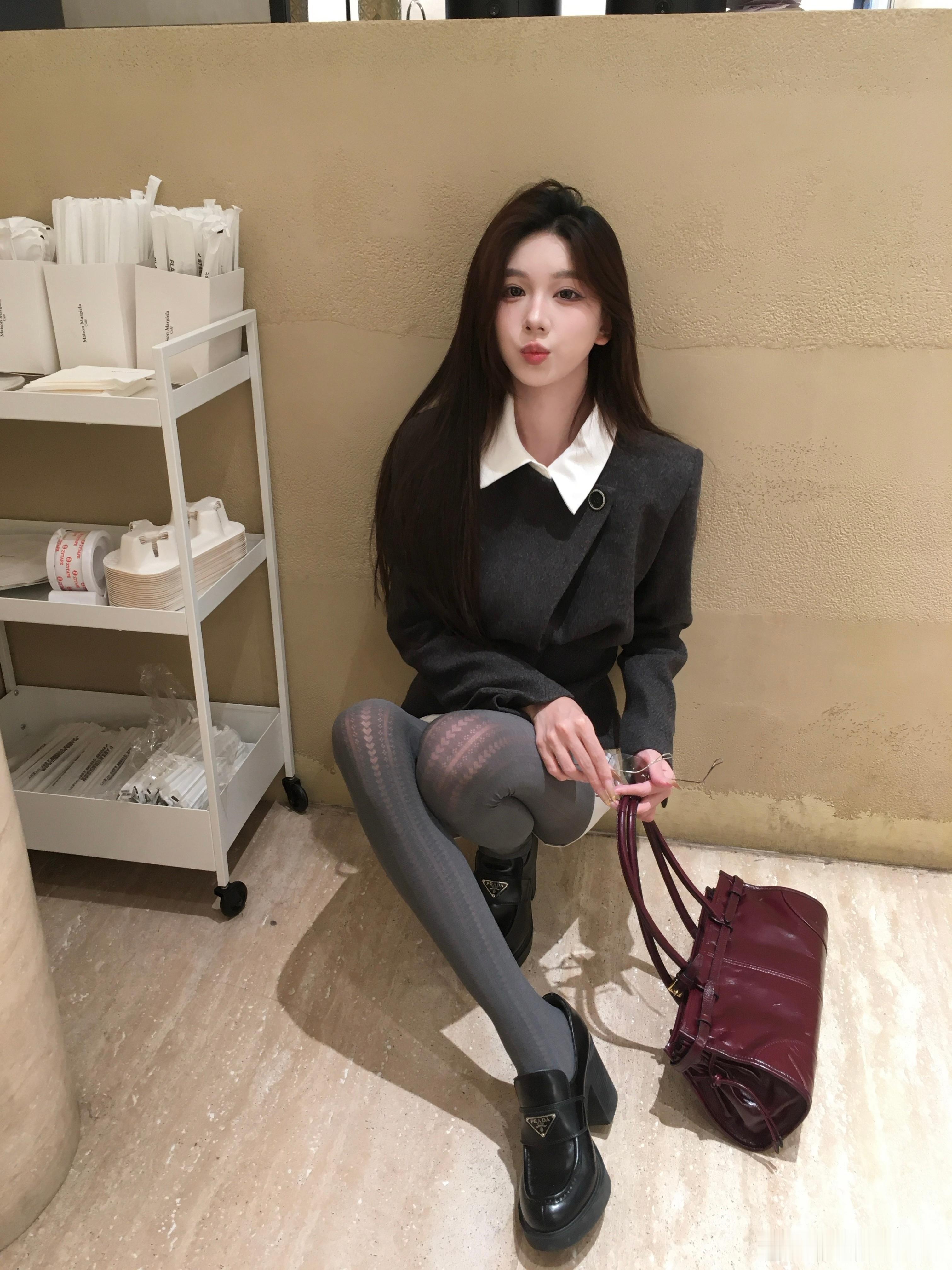 之前说厚黑不太喜欢是真的觉得不太好搭 有点显土(仅代表个人观点) 但是灰色的连裤袜我一直很喜欢穿 如果冬天不想光腿可以试试灰色的袜子 比厚黑更洋气 而且很好搭配 但是推荐买薄款哦 太厚的也会有点显腿粗