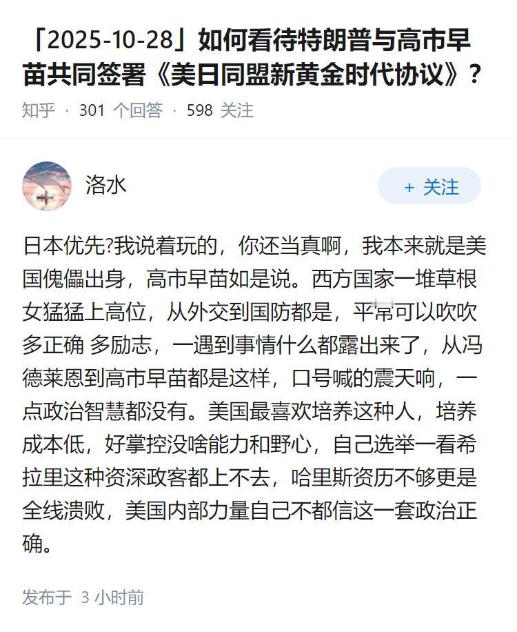 「2025-10-28」如何看待特朗普与高市早苗共同签署《美日同盟新黄金时代协议》?