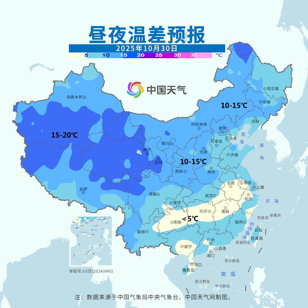 比如11月3日最高气温,沈阳15℃,贵阳12℃。11月4日最高气温,太原18℃、南昌17℃;郑州21℃、福州19℃。不过阴雨过后,南方气温也会明显回升。贵阳11月4日比3日,最高气温回升7℃;福州11月5日比4日,最高气温升6℃。