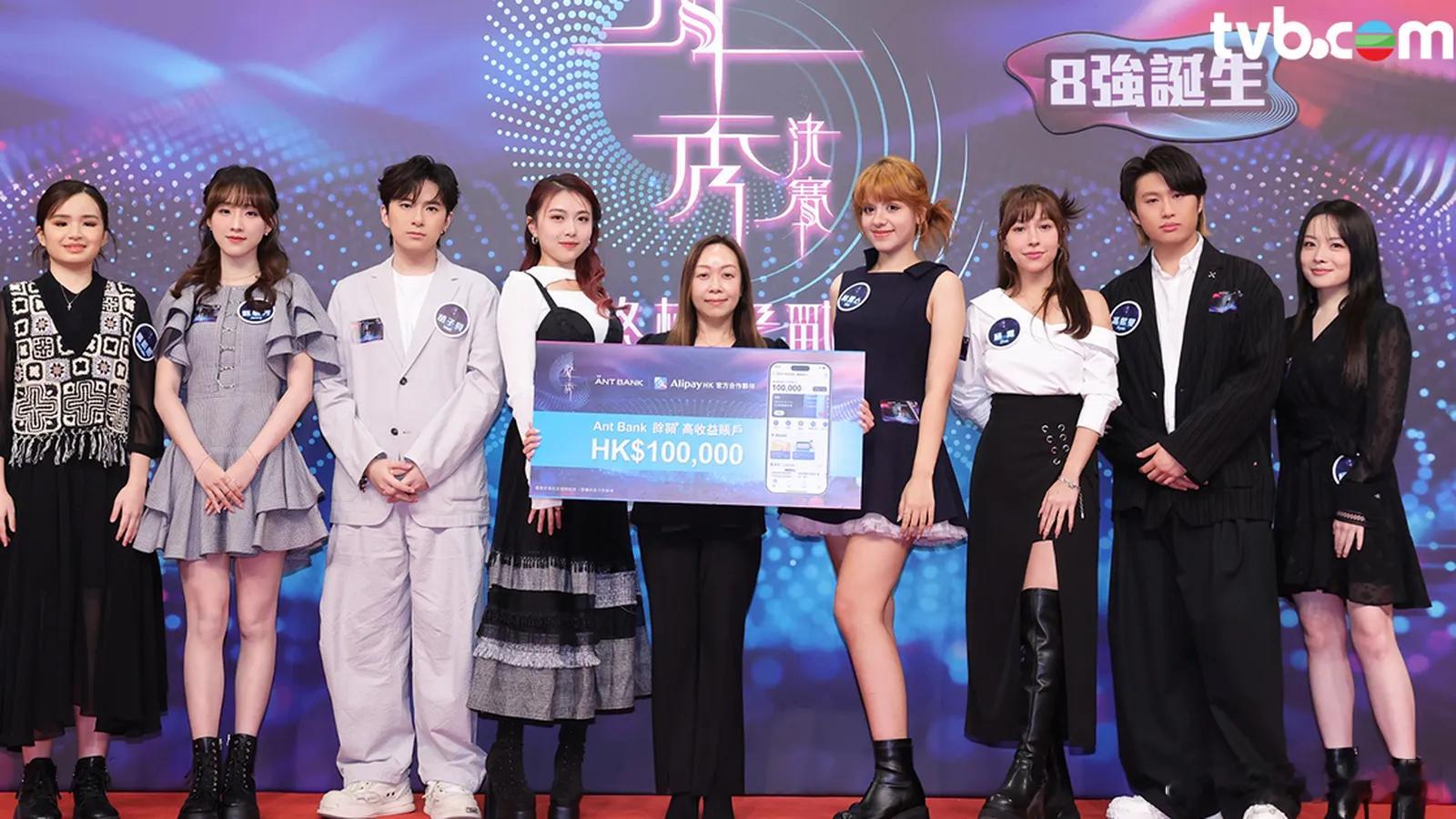 TVB昨(27)日假將軍澳電視廣播城舉行《聲秀決賽 終極聲戰》8強誕生記者會,率先介紹決賽詳情,8強學員亦現身,逐一分享備戰情況;會上更揭曉決賽冠軍將可獨得由AlipayHK送出的Ant Bank餘額+高收益賬戶存款總值港幣10萬元。