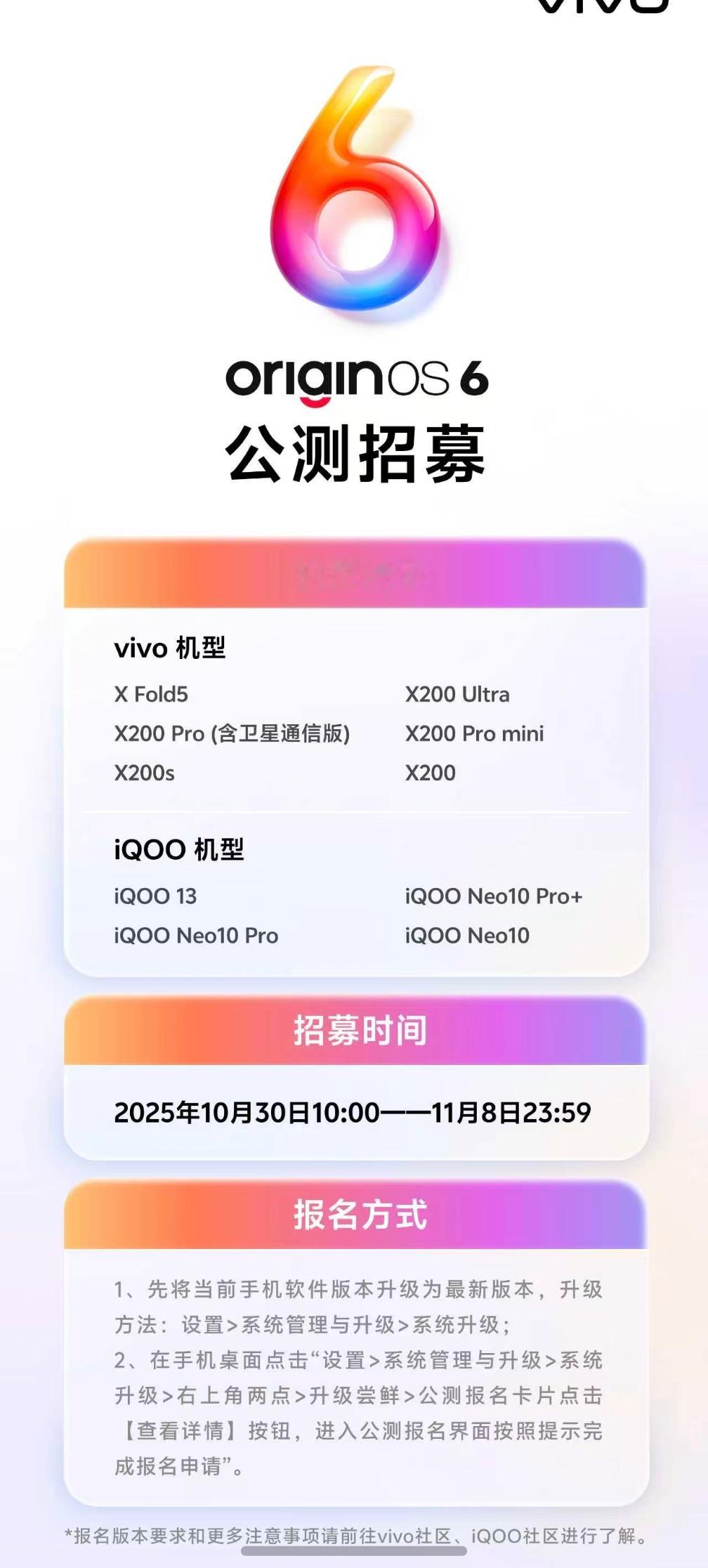 OriginOS6的老机型公测招募开启了,刚给我的X200 Ultra报了个名[哈哈]涉及的机型有:X200系列,iQOO 13,iQOO Neo10系列。赶紧冲[打call]