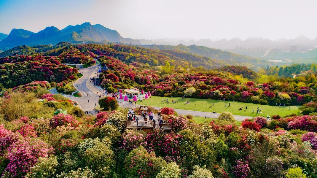 中国最美的花海之一——百里杜鹃,你去过吗? 百里杜鹃景区位于贵州毕节市黔西县和大方县交界处,是国家AAAAA级旅游景区。 以下是其详细介绍及攻略: 百里杜鹃总占地面积约125.8平方公里,因有宽1-3千米、绵延50余千米的天然杜鹃林带而得名。这里是迄今为止中国乃至世界上集中分布面积最大、种类最多、保存最完好的原生杜鹃林,有“地球彩带、世界花园”的美誉。 景区内有40余种杜鹃花,囊括了世界杜鹃花5个亚属品种的全部,且一树不同花,一棵树上最多能开出7种颜色的花。 每年3月下旬至5月,各色杜鹃花竞相盛放,花海绵延百里,十分壮观。此外,景区还拥有瀑布、草原、温泉等自然景观,以及以彝族文化为代表的多元民族文化等旅游资源。 游玩攻略: 景区门票:通票130元/人,含普底、金坡、杜鹃花王景区、戛木景区,观光车70元(3日内通用)。65岁以上老人、6岁以下儿童等多种人群可免票,但需持有效证件并提前预约10元安全服务包方可入园。 交通指南:可选择“高铁+直通车”的方式,从毕节高铁站、大方高铁站、黔西高铁站均有直通车前往百里杜鹃景区,每日8:30首班,每2小时一班。也可乘坐客运车,从鹏程一期发车点可直达大方、黔西、金沙等地。还可选择出租车,随招随停。 一日游路线:上午前往金坡景区,打卡索玛花桥、揽秀台等景点,欣赏花海美景,还可在乡创中心选购特色文创产品。下午到普底景区,沿寻花路漫步,参观五彩路、红军广场等,下午2:00还可观看寻花路的“花仙子巡游”活动。晚上到花都城区,观赏无人机表演、参加美食音乐节,在石牛旅游小镇二期“烙锅一条街”品尝毕节烙锅等特色美食。(图片来源于网络)百里杜鹃烂漫时 杜鹃旅游攻略