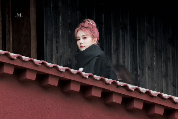 白鹿奔跑吧神级镜头,白鹿粉丸子头,谁懂这个俯瞰镜头的白鹿的压迫感啊,黑衣+粉发,我一整个爱住啦~