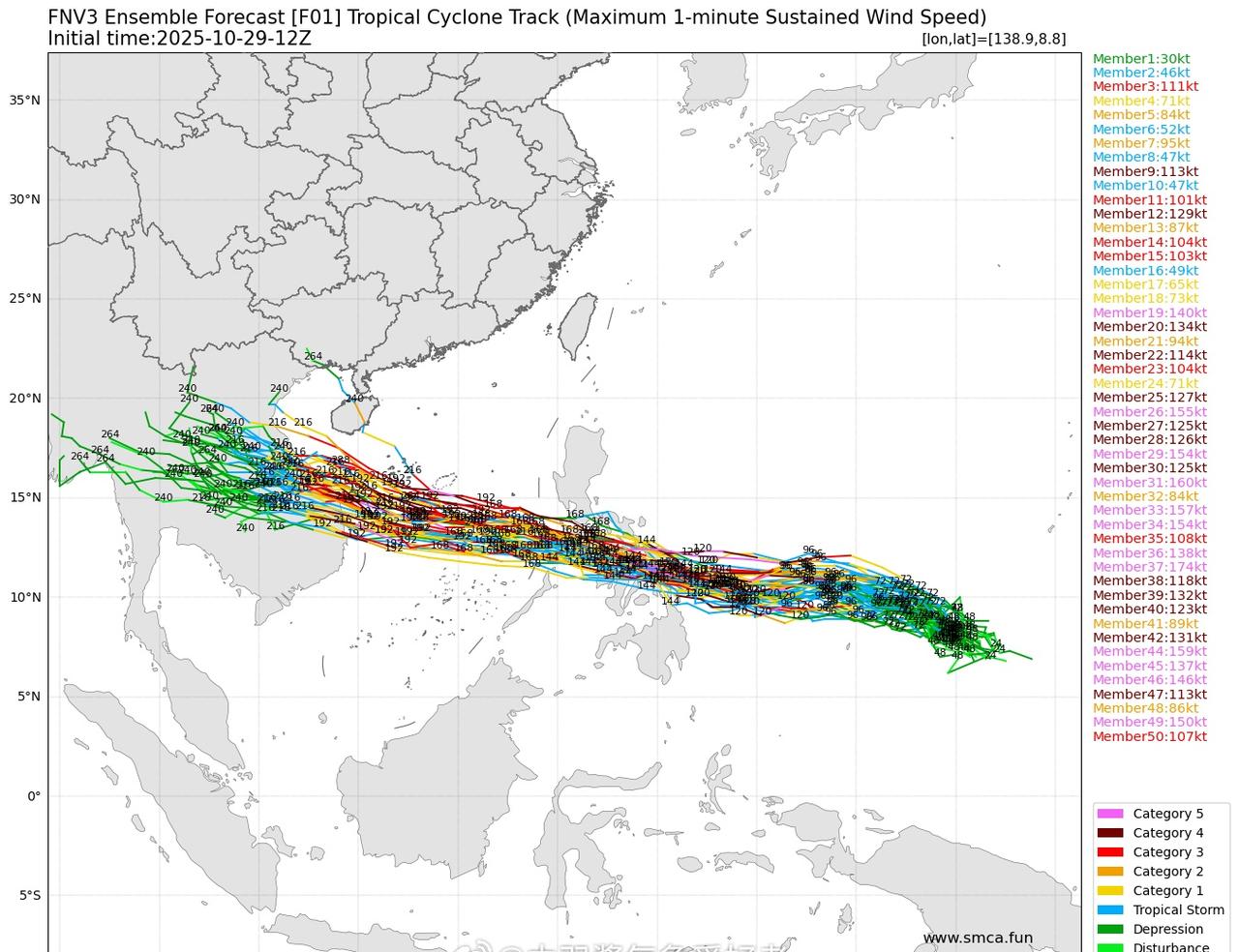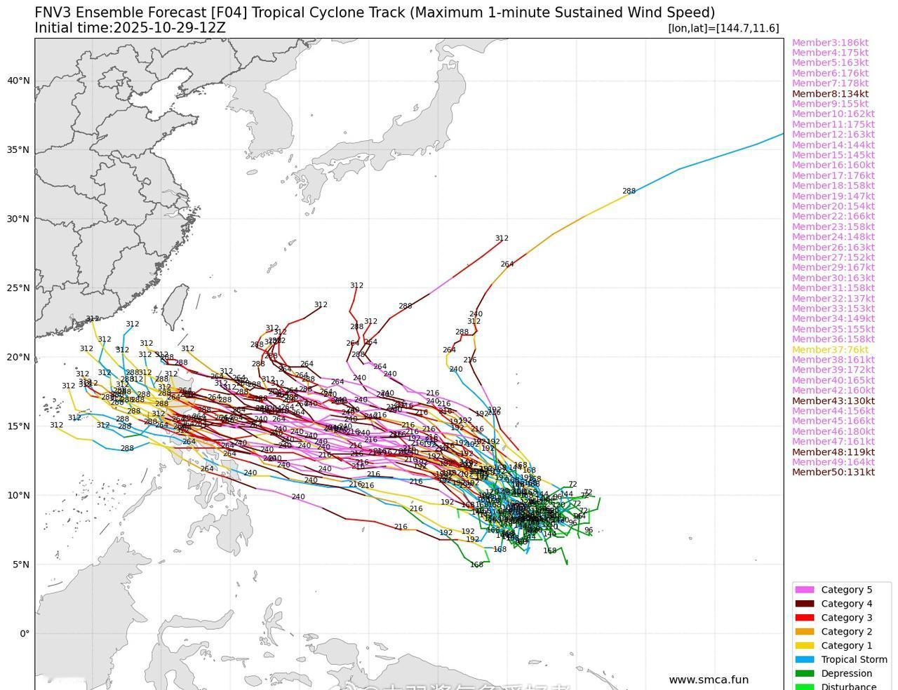 第25号台风海鸥即将在11月初生成,并且路径方面收束,登陆越南的可能性高,但外围影响可能波及到海南一带。强度有较大可能脱水,但不算是压轴台。而后续,第26号台风凤凰才最有可能是撑起西太一片天的存在,fnv3成员报再度调强,高潮c5,但需要再等等看。