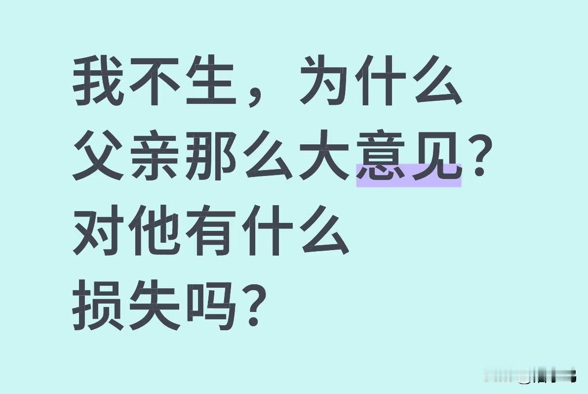 我不生,父母为啥那么生气? 我实在无法理解,我不想生二胎,公婆就算了,父母为啥也那么生气? 如果说是为了养老问题,那也是我的责任不是吗?我的孩子也是给我养老,为啥那么生气,说一大堆伤我的话实在是想不通,有人知道吗?