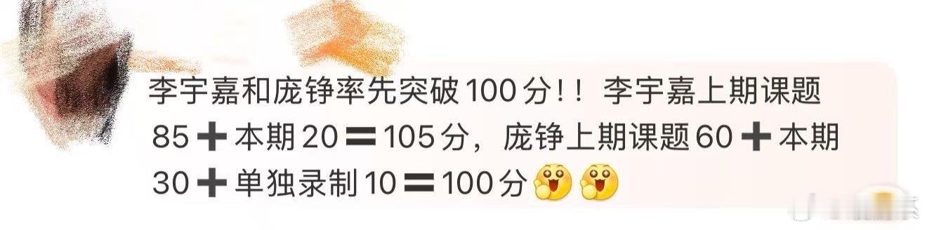 李宇嘉庞铮率先达到一百分 百分不仅是一个数字,更是对他们努力的最好认可,是专业能力和职业素养的双重证明,也是未来无限可能的起点。