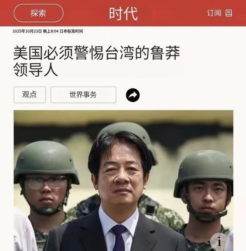 前些天,美国《时代》杂志刊文将赖清德称为“鲁莽的领导人”、指台湾成为“最危险的引