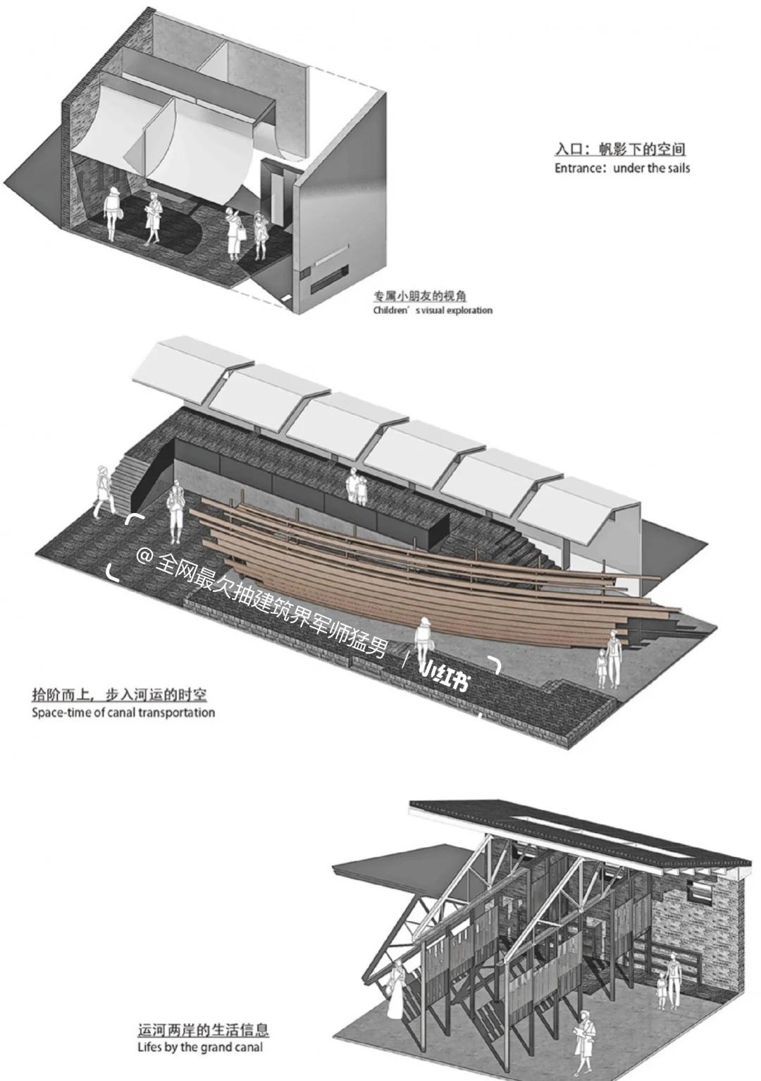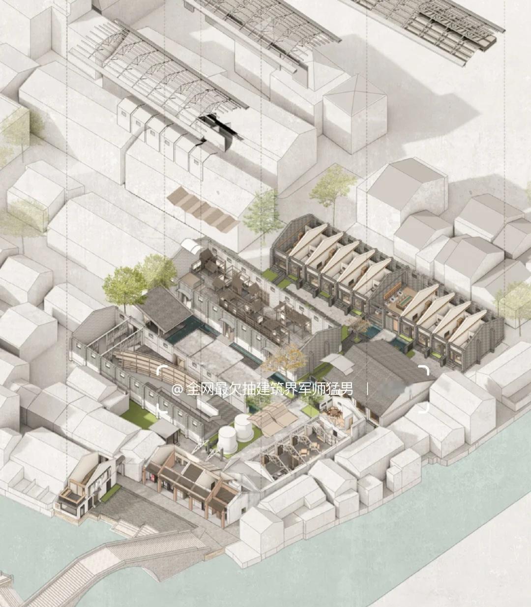 运河畔的平行旅程!四河交汇处的老镇新生 【100套文旅改造案例深度解析|Vol.52】 运河畔的平行旅程!四河交汇处的老镇新生 ■ 项目标签 民宿 城市更新旧村改造 旧建筑改造及活化 城市探索家 自建房 民宿设计 建筑 近现代建筑 历史与现代的融合 ■ 设计亮点解析 ❶ 入口再造——新旧对话的序章 ▸街入口建筑恢复传统风貌 ▸阳光板屋盖引入光影魔术 ▸保留民众烧香场所延续集体记忆 ➠传统肌理与现代功能完美融合 ❷ 粮仓变身——时空交叠的容器 🔥神来之笔:保留原有导轨+粮斗造型吊顶 ▸五区联动:味道博物馆-Y河展馆-市集-民宿 ▸新旧地砖拼贴诉说时光故事 ▸排水渠化身流线引导的暗线 ➠老粮仓蜕变为文化体验综合体 ❸ 展陈革新——可触摸的运河记忆 ▸“解构货船”装置: ·静态框架隐喻时空碎片 ·延长参观流线丰富体验 ▸“二十四次心跳”互动装置: ·波纹阳光板+镜面玻璃打造光影游戏 ·对应节气变换的在地信息载体 ■ 材质密码 原木屋架× 阳光板 × 金属网帘 × 老条石 × 镜面玻璃 ➠新旧材料共奏运河光影协奏曲 ■ 运营价值点 ✅多业态联动满足全域旅游需求 ✅文化转译装置增强游客互动体验 ✅传统运河文化注入当代生活场景 ✅改造模式可复制至大运河沿线项目 📌 设计师暗语: “当金属网帘映出运河涟漪时 老镇迎来了它的第二次生命” ■ 改造启示录 在有限预算和周期内,通过“建筑介入体”策略: ·尊重原有建筑形制 ·巧妙置入新功能 ·运用低成本新材料 实现老镇空间的活化再生,为长三角地区文旅改造提供典范样本。