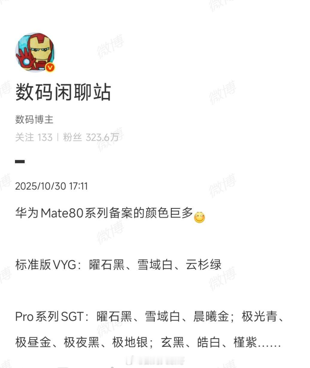 Mate80系列太会整活了!配色多到能满足所有人审美,快充和摄像模组也全升级,11月份一发布,估计又要成热门机型[doge][doge]