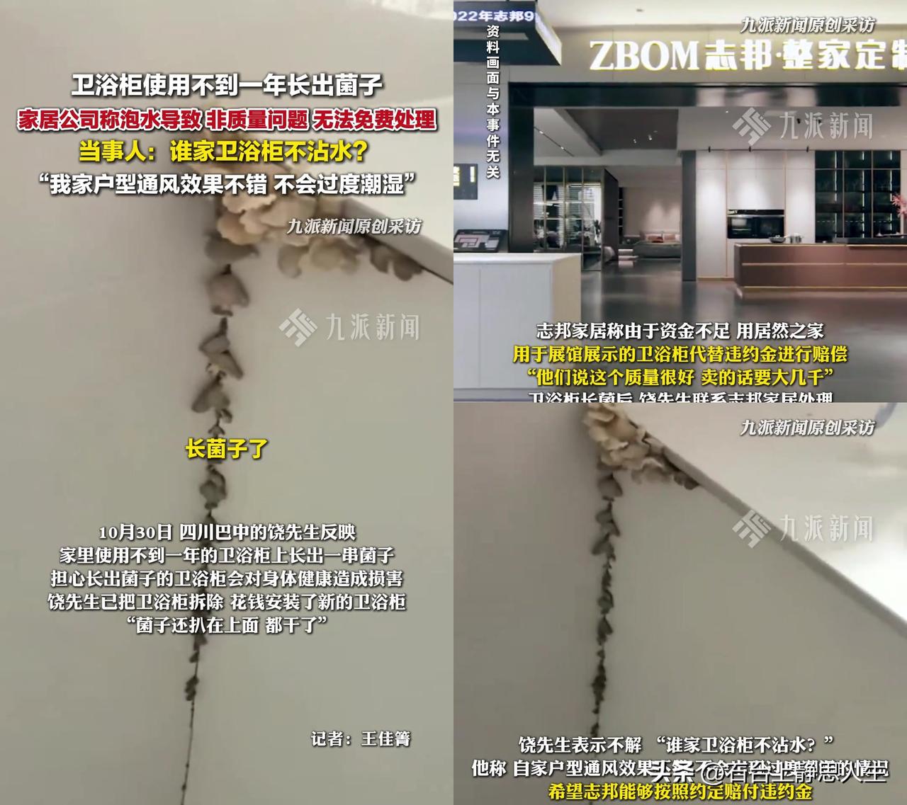 你家卫浴柜沾过洗澡的水蒸气吗?洗手时溅过水花吗?要是长了一串菌子,商家说“是你泡水导致的”,你会不会气到想摔柜子? 饶先生去年花5.5万买志邦全屋定制,工期拖了一个多月,商家用展厅的卫浴柜抵违约金,说“质量好,卖大几千”。 结果不到一年,柜子上长了菌子,扒在上面都干了!联系商家才发现,代理商早跑路了。 志邦总部倒回应了:“工厂判断是泡水导致,不免费处理。” 有人说“这是实木,该高兴”,可饶先生委屈:“我要的是放洗漱品的柜子,不是种蘑菇的实验田!” 有人说“能长菌说明没甲醛”,但谁敢让孩子碰长菌的柜子? 合着我们买的是仅供干燥房观赏的展览柜?谁家卫浴柜没沾过水?洗澡的水蒸气、洗手的水花,哪次不是正常用? 你们家遇到过这种正常使用被当作妖的烦心售后吗?比如洗衣机溅水说“你用多了”,冰箱放剩菜说“没密封”? 大家怎么看?