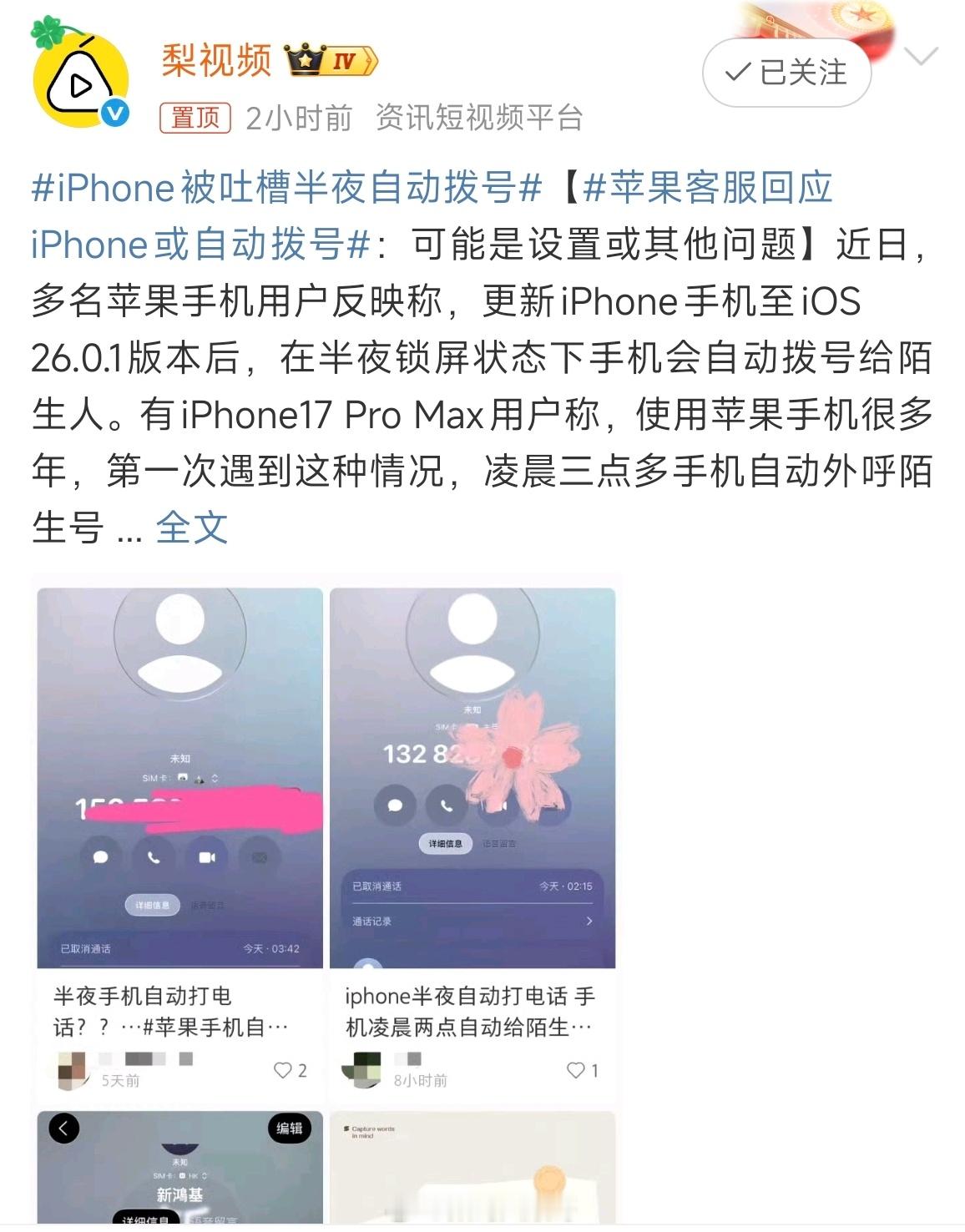 iPhone被吐槽半夜自动拨号是中病毒了吗?除此之外还有的情况吗[疑问][疑问]