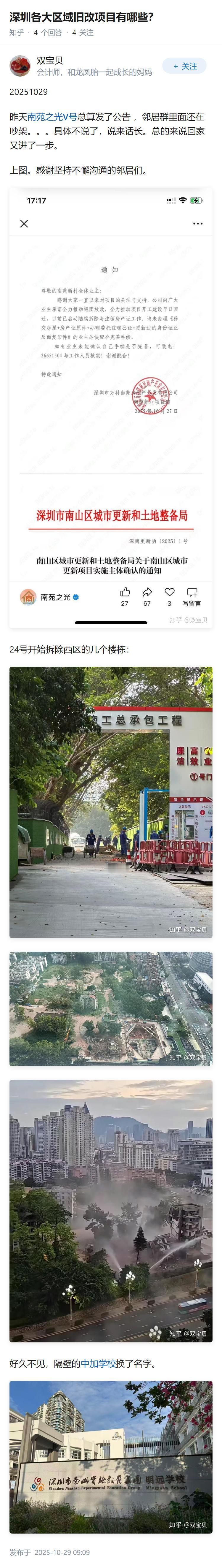 深圳各大区域旧改项目有哪些? 20251029 昨天南苑之光V号总算发了公告 ,