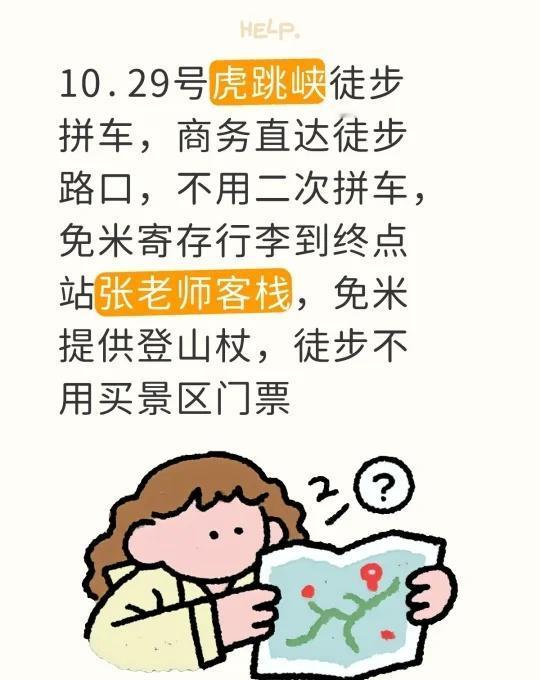 虎跳峡高路封闭了吗? 虎跳峡高路暂时没封闭的 封闭的是一线天,天梯,168勇者梯发呆石那块! 高路徒步纳西雅阁出发,茶马客栈,中途客栈,到张老师客栈,或者Tinas这段目前是正常出行的 想出发就乘早,把想去的地方都变成走过的路! 我们每天丽江往返虎跳峡徒步拼车 早上七点丽江古城接人 七点半左右出城 九点左右送到山上开始徒步 下午三点半和五点两个班次张老师客栈上车返回丽江或者香格里拉 丽—虎80 丽—虎—丽140 丽—虎—香140 香—虎80 香—虎—丽140 香—虎—香140 丽江到中途客栈拼车及包车 丽江到茶马客栈拼车及包车 丽江到纳西雅阁包车拼车 户外登徒步