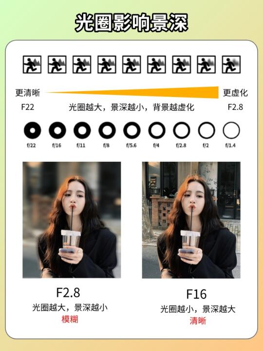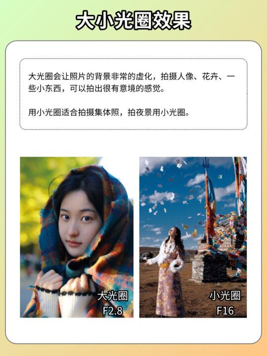 大光圈可以虚化背景,小光圈适合拍摄大场景