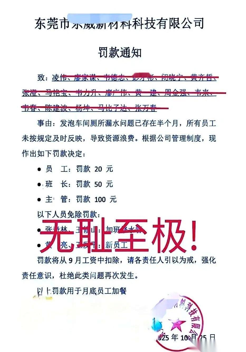 广东这家公司,真是把“株连”玩到了新高度。 一个厕所漏水,没人吱声,结果整个车间,从主管到员工,一人一张罚单。 最绝的是,罚的钱,说是月底用来给大伙儿加餐。 我看到这儿都气笑了。 这是什么操作?抢了你的钱,再给你买个馒头,还想让你感恩戴德,说老板体恤我们? 很多人第一反应是骂员工没责任心,没把公司当家。 可但凡上过几年班的人都该明白,一个两个人不吭声,可能是个人问题。但凡一个正常的集体,一群人,整整一个车间,都对一个问题视而不见,那100%是“家”本身出了问题。 要么,是这家公司有条不成文的规定,叫“谁发现,谁解决”,大家多一事不如少一事。 要么,就是以前反映过无数次类似的问题,次次石沉大海,大家早就心寒了,懒得再自讨没趣。 当沉默成了所有人的默契,那漏的就不是厕所的水了。 漏的,是人心和信任。 老板想用罚款这种最低级的手段,去考验所谓的“责任心”,结果只暴露了自己管理的无能和傲慢。 那顿“加餐”,吃的不是饭,是羞辱。
