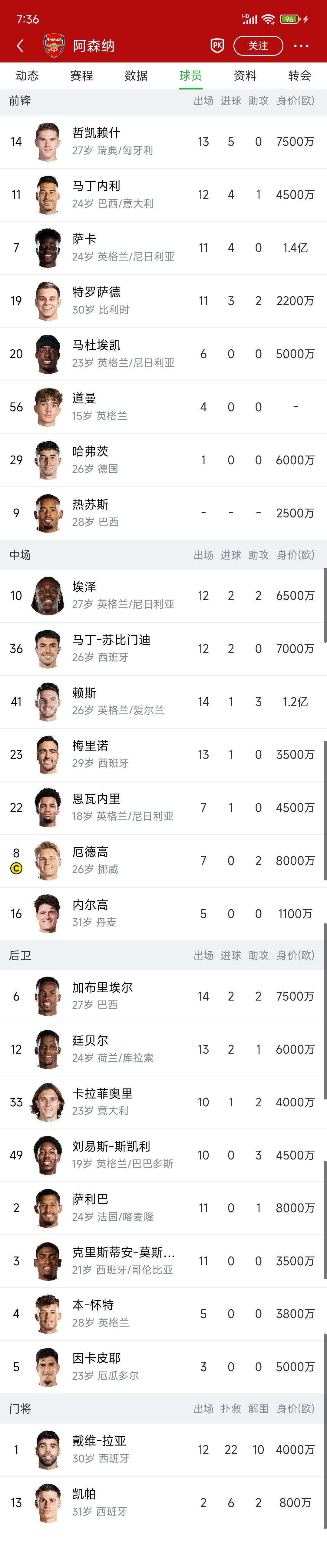 阿森纳就是头轻脚重的球队。 后防线历史级别,大概率破英超防守记录。 中场水平一般,在英超中上等。 锋线比较平庸,英超及格线左右。 我是担心阿森纳踢欧冠没戏,等到淘汰赛没人进球咋办??确实锋线超级巨星呀。 给这支阿森纳一个亨利,绝对称霸足坛了,或者来个凯恩,莱万,本泽马多好。[可怜]