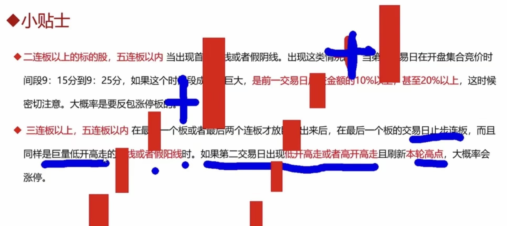 2. 三连板在五板以内,最后一或两个涨停板放量,第二个交易日低开高走或高开高走且刷新本轮高点,大概率涨停。
