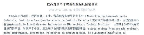 巴西的报复来了!巴西宣布要对在国内的中国非织造布无纺布进行反倾销调查!   要知道中巴做了十几年的铁杆贸易伙伴,中国连续15年都是巴西第一大买家,现在突然来这一手,就不怕把关系搞僵吗?   巴西其实有自己的小算盘,这招不是冲着“翻脸”去的,更像是给本土产业的“保护罩”。   反倾销调查在国际贸易里不算新鲜操作,巴西之前就对中国的合成纤维针织布启动过反倾销复审,这次不过是老办法用在了新商品上。   调查的由头很明确,是巴西本土企业提了申诉。这些企业觉得中国非织造布大量进入后,本土市场的竞争压力陡增。   巴西调查机构找了印度当替代国测算,认定中国产品的倾销幅度在25.3%到50.1%之间,还发现过产品规避监管的情况,这些都成了启动调查的理由。   中国非织造布的出口实力确实能让巴西企业紧张。早几年前,中国非织造布单月出口额就实现了54.9%的同比增长,出口量增幅也达到52.2%。   这几年对巴出口势头同样不弱,毕竟中国对巴西的中间品出口整体都在涨,前10个月的增幅就有11.8%,非织造布正好在这个范畴里。   巴西最近的经济处境也逼得它必须护着本土产业,2025年8月,美国对巴西商品加征了高达50%的惩罚性关税,农业、化工等支柱产业被砸得够呛。   巴西北里奥格朗德州96%的输美产品都被加税,当地渔业船队直接停工。经济受了冲击,巴西自然想把本土市场守得更牢。   但巴西绝对不敢真跟中国闹僵,双方的贸易捆绑实在太深。前10个月,中巴双边贸易额已经达到1.14万亿元,同比还涨了9.9%。   中国从巴西进口的大豆、铁矿砂占比都超过七成,巴西牛肉9月对华出口量更是激增38.3%,创下单月新高。这些实打实的利益,巴西不可能不掂量。   更关键的是巴西还指着中国开拓新市场。美国加税后,巴西正忙着把出口重心往亚洲转。北里奥格朗德州已经在争取鱼类、腰果的对华出口许可,还计划在亚洲设海外办事处。这种时候把关系搞僵,等于断自己的后路。   说到底,这次反倾销调查更像是“敲边鼓”。巴西想借着调查给本土企业争取喘息空间,同时也试探中国的反应。   毕竟中巴贸易的基本盘在那摆着,中国需要巴西的资源,巴西依赖中国的市场和投资,比如比亚迪在巴西的新能源基地都已经开工了。   后续双方大概率会坐下来谈判。巴西可能会要求中国企业调整出口价格,中国企业也能就替代国选择等问题提出异议。   这种摩擦在紧密的贸易关系里难免发生,不会真的影响中巴合作的大方向。毕竟对巴西来说,得罪最大买家的傻事,再急也不能干。   来源:中国贸易救济信息网 【巴西对涉华非织造布发起反倾销调查】