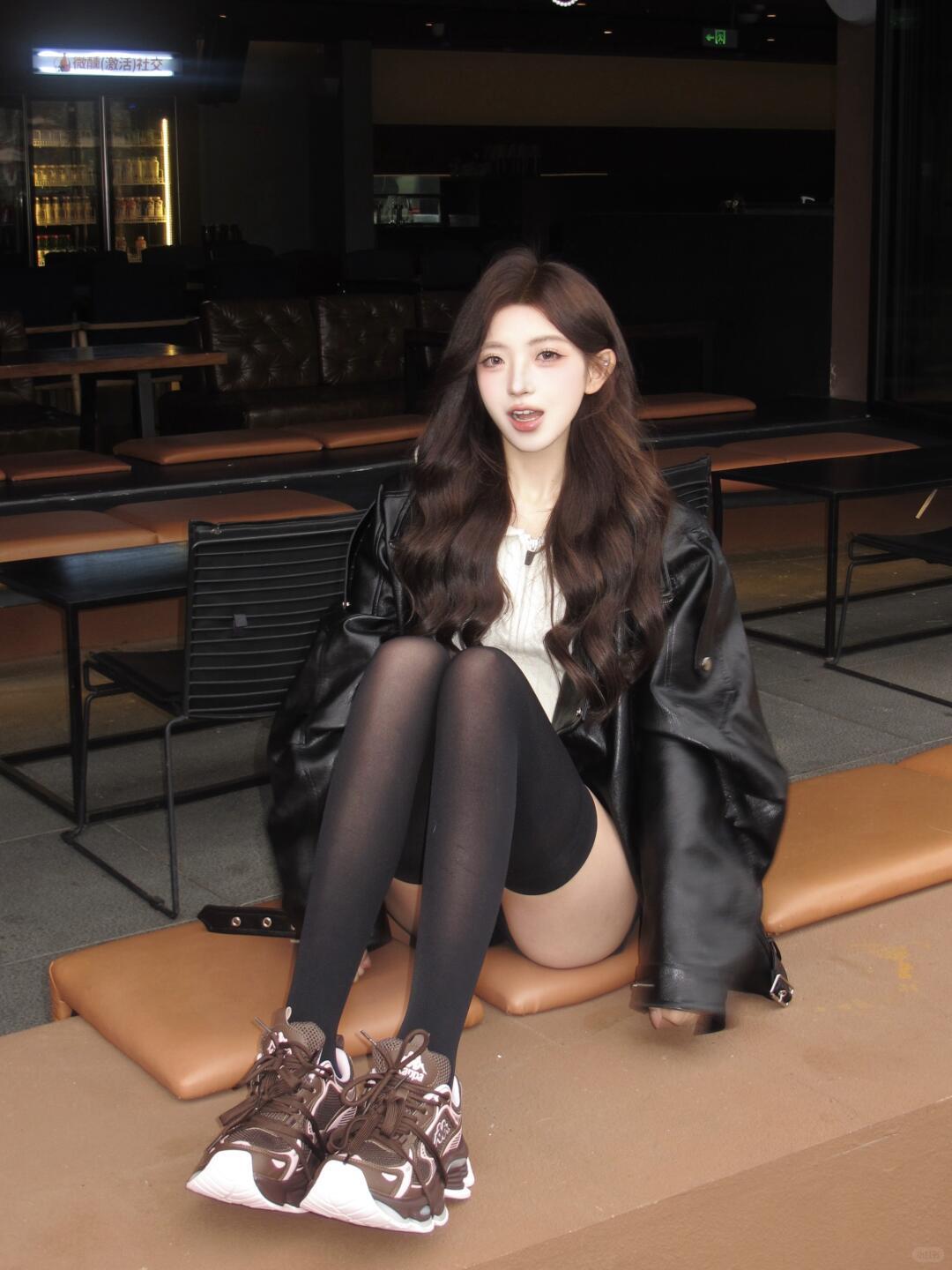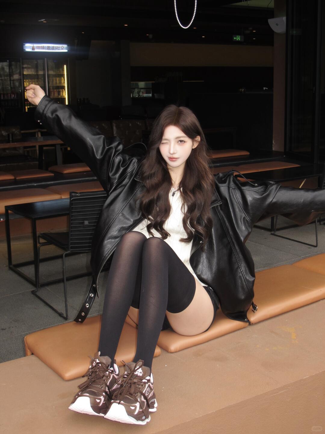 穿搭指南:皮夹克搭配黑丝运动鞋,都市女孩的酷炫风范!穿搭性感