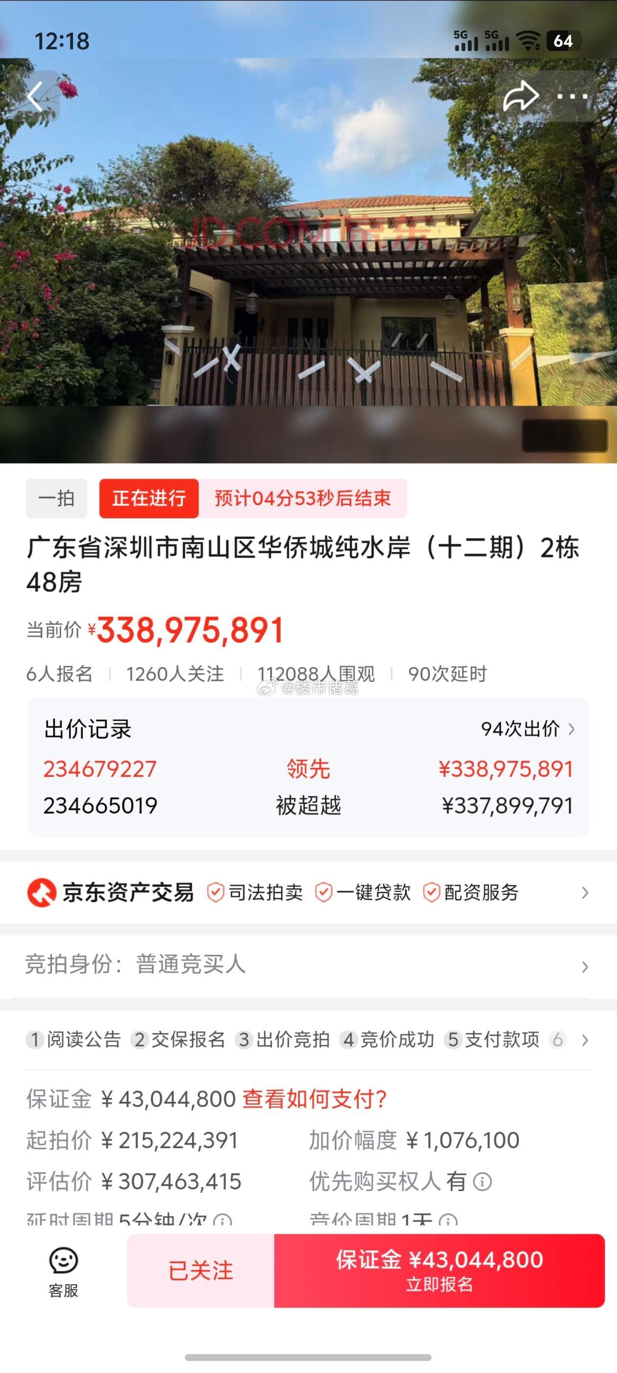 楼市第一线超100000人围观,深圳最贵法拍房正在激烈进行中…深圳楼市华侨城