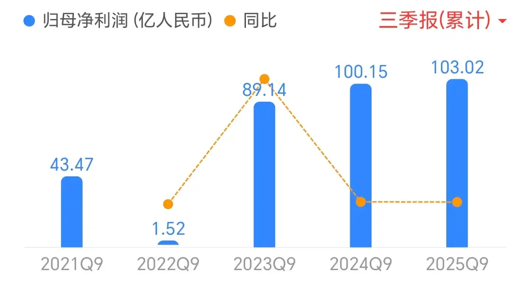 其中第三季度营收近118亿元,净利润39.86亿元,同比增长8.96%。