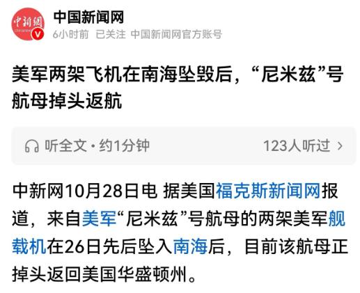尼米兹号最终还是走了,根本不敢在原地逗留打捞坠海的战斗机。 美国福克斯新闻网28号的报道把话说得很明白,26号刚在南海摔了两架飞机,这艘巨舰就没敢在原地多待,直接调转了船头。这背后藏着的,全是美军说不出口的窘迫。 出事那天的节奏快得让人反应不过来。当地时间下午2点45分,一架MH-60R“海鹰”直升机刚从尼米兹号甲板起飞执行所谓的例行任务,没飞多远就一头扎进了南海。 救援人员还在忙着把机上3名船员捞上来,半小时不到,下午3点15分,另一架F/A-18F“超级大黄蜂”战斗机又跟着栽进了海里,两名飞行员靠着弹射才捡回一条命。短短几十分钟内接连损失两架舰载机,这种小概率事件砸在尼米兹号头上,本身就透着反常。 美军嘴上说事故原因还在调查,前总统特朗普倒是先在“空军一号”上甩了锅,说是“劣质燃油搞的鬼”,还特意强调不是人为破坏。可这话根本站不住脚。 尼米兹号作为核动力航母,油料检测流程严得能登天,怎么可能让有问题的燃油混进战机油箱?真正的病根,其实藏在这艘老船的骨血里。 从1975年服役到现在,整整半个世纪的海上奔波,早把它耗得满身是伤。原本计划2025年退役,结果因为新航母接不上茬,被迫延期到2026年以后。 2022年储水仓漏过水,2021年刚修完就查出核动力装置有“轻微缺陷”,不少零件早就停产,维护人员只能到处找二手货拼凑。这样一艘“带病上岗”的老航母,出问题是早晚的事。 更要命的是船员的状态。这趟部署对尼米兹号来说就是场“疲劳马拉松”。3月从华盛顿州母港出发后,先去中东应付红海危机,在波斯湾的高温高盐环境里折腾了好几个月。任务一结束连回国休整的空当都没有,直接转头往南海赶,非要来搞所谓的“航行自由”。 大半年飘在海上不说,美国联邦政府还动不动停摆,军饷都没法按时发,有些士兵得靠贷款、领救济才能过日子。士气低落到这份上,谁还有心思抠细节?操作疏忽、流程走样,隐患早就埋下了。军事专家张军社也点透了,长期高强度部署把美军逼得太狠,人员疲惫、兵力紧张,事故风险自然蹭蹭往上涨。 不逗留打捞,本质上是没那个底气。坠机的海域在南海南部,平均水深2000米,海底全是山脉沟壑,就算知道飞机在哪掉的,找残骸都得费老大劲。 尼米兹号编队里压根没有深海打捞设备,真要捞,得从日本或者本土调工程船,光路上就得耗半个多月,全套流程走下来,指不定要在南海“加班”一两个月。 2022年卡尔·文森号摔了F-35C,用的打捞船还是新加坡公司的,而且是中国设计制造的。这次再要找帮手,脸面上先挂不住。 更让美军纠结的是中方的态度。27号外交部记者会上,发言人明说愿意从人道主义角度提供协助,这话里的门道可深了。中国就在南海边上,深海定位、打捞的设备一应俱全,真要出手,效率比美军高十倍都不止,人家五六天能搞定的事,美军得等半个月。 可美军敢接这个橄榄枝吗?接了,就等于承认自己在南海离了中国不行,“军事霸主”的架子彻底垮了。不接,就得耗在这,一边防着别人动残骸,一边还得跟解放军对峙,精力根本不够分。 其实尼米兹号的尴尬只是美军现状的缩影。同属尼米兹级的杜鲁门号今年也没少出事,撞商船、接连摔三架超级大黄蜂,舰长都被撤了职,船身的伤靠刷漆掩盖,透着股“修补完祈祷没事”的敷衍劲儿。 最先进的福特号也好不到哪去,电磁弹射器老出故障,污水处理系统还溢流过,船员生活区瘫痪了一周多。说白了,美军非要把兵力撒在全球维持霸权,结果把自己逼得顾此失彼。 这趟本是“谢幕之旅”的部署,硬生生变成了尴尬的收尾。尼米兹号回去之后,明年4月就得挪去诺福克海军基地拆设备,然后送进船厂拆核燃料、停用反应堆。 没敢逗留打捞的背后,是装备老化的无奈,是人员疲惫的现实,更是霸权撑不住的缩影。再这么硬撑着往别人家门口凑,指不定还会出更丢人的事。