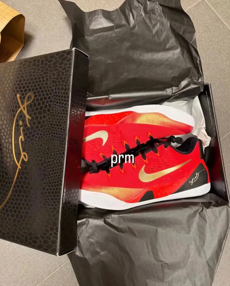 今天海外再次更新了该复刻的实物和具体发售日期,这次的新版本基本与原版一致,中国红鞋面搭配金色Swoosh鞋舌则能看到生肖蛇元素,靠近中底部分的金色斑点与反光效果也是该鞋的亮点之一。目前Nike Kobe 9 Low EM "China"预计将在11月22日发售。科比KobeBryant只关于科比