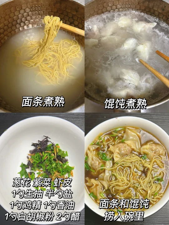 今天分享紫菜虾皮馄饨面 简单好吃!! 冬天来一碗热乎乎的好舒服! 做法看图