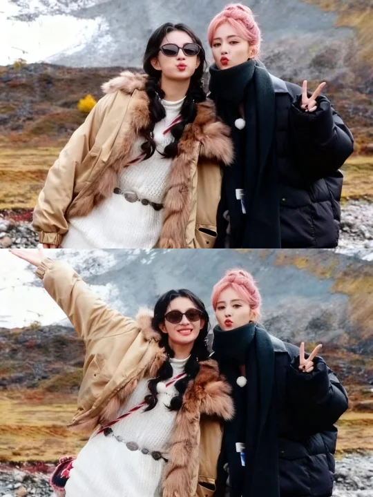 谁懂啊!看跑男路透被王楚然和白鹿甜到了~ 不同车也要隔空聊天,合照一直贴贴,还上手帮鹿鹿整理衣服,喜欢简直从屏幕里溢出来! 而且白鹿这身穿搭也太好看呀,蓝色半身裙+马丁靴+棉服,粉发扎成丸子头,又甜又酷! 素材来源:网络