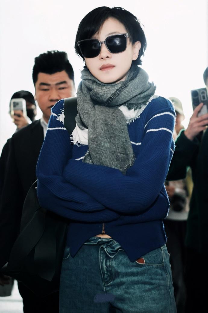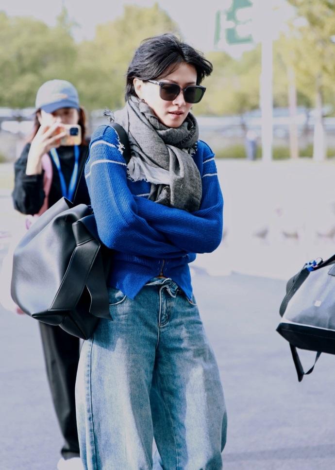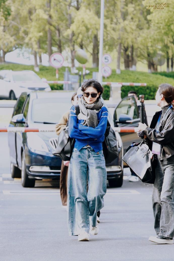 今天万茜现身机场,她这回搭配的很有潮流时尚之美,看起来也格外的显年轻。 万茜上身穿蓝色毛衣,下身搭配做旧风格的牛仔裤,秀出了纤细的腰部线条,还凸显出了完美的身材比例。 她的身段是越来越苗条了,看上去也很有青春活力气息。 万茜脚踩白色运动鞋,增添了活力气息,气质超好。 她脖子上围着灰色的围巾,还留着清新的短发,同时戴着黑色墨镜,有种酷酷的感觉。 万茜如今还是很有文艺气息,这次走复古风路线,显得美极了。