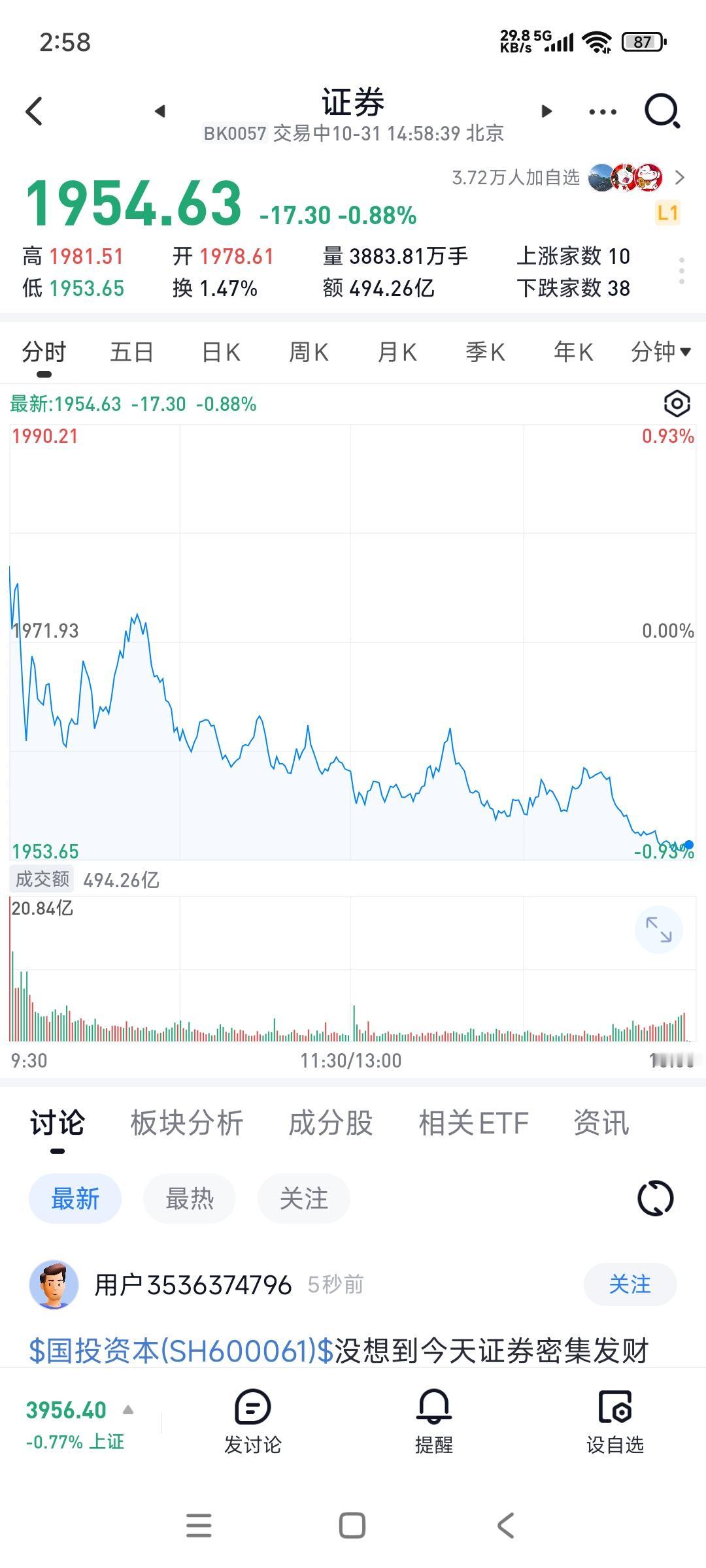 今天的行情比之前更诡异,主打“业绩反转逻辑”,也就是说,业绩差的板块,或同比下滑的个股,都上涨或大涨,比如白酒板块就大涨了,连出现亏损的酒鬼酒都上涨了,这就叫利空出尽... 而业绩大增,甚至翻倍的板块,就一直大跌,比如保险板块,上半年不错,第三季度就更完美,可却是跌幅最大的板块,券商里面很多个股收益都翻倍了,可今年没怎么涨,业绩出来还持续下跌...这就是所谓的利好出尽?[捂脸] 说什么股市炒的是预期,我觉得大部分所谓预期好的,真到了时候,还不如那些保险与券商... 诡异的市场...