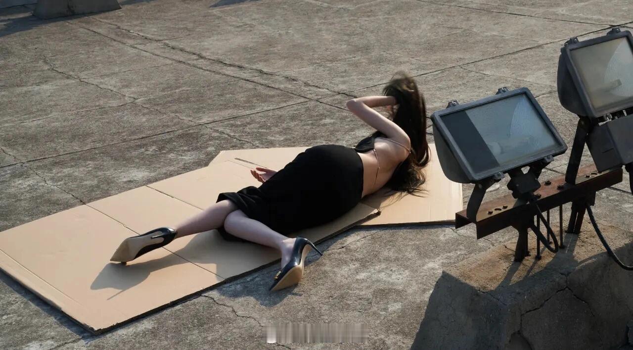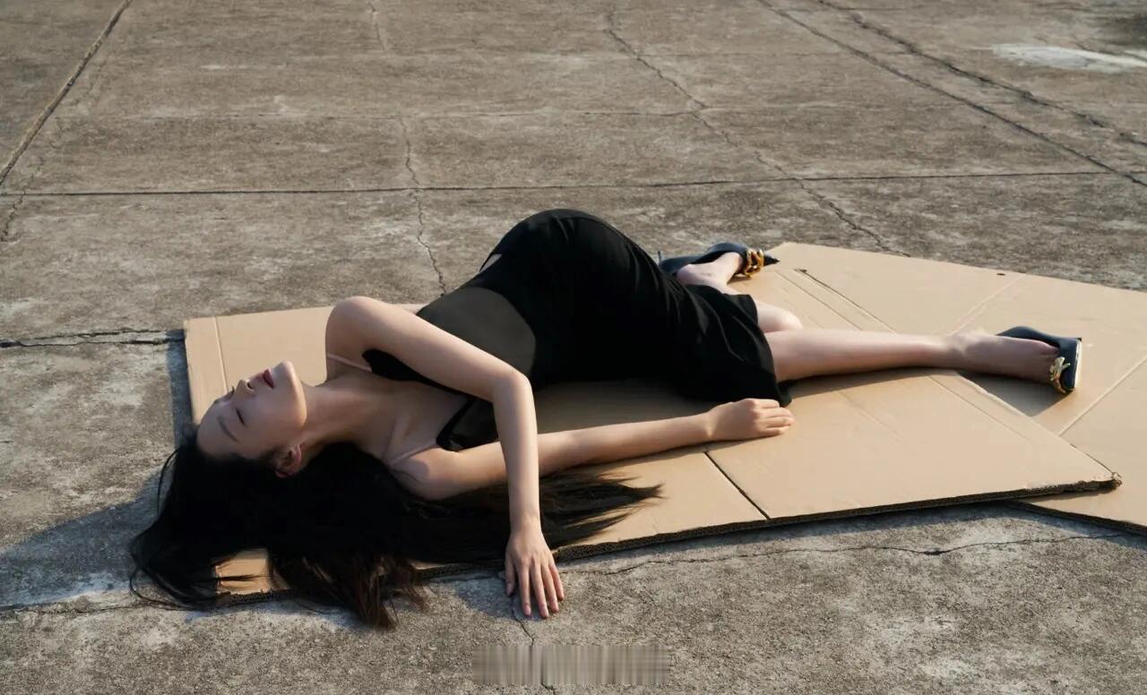 李沁躺纸板大片